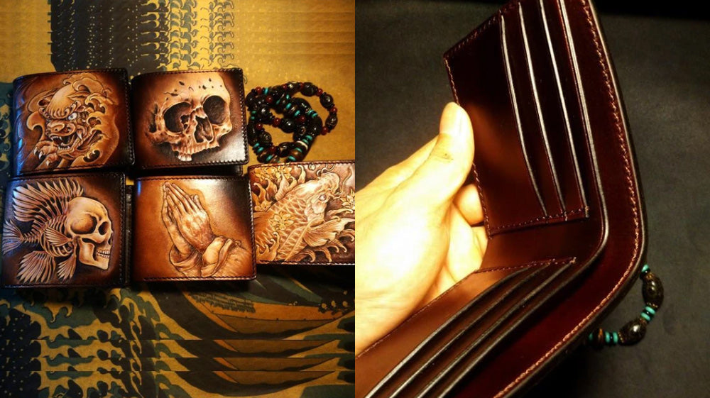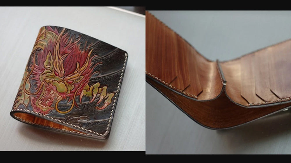 - Another unique and beautiful exterior is this slim wallet. The details are embossed and specially crafted. It is adorned with a Chinese Dragon as its profile. Bifold and durable, this wallet can hold both cards and cash. Moreover, it is convenient to carry around because of its portability and light weight.