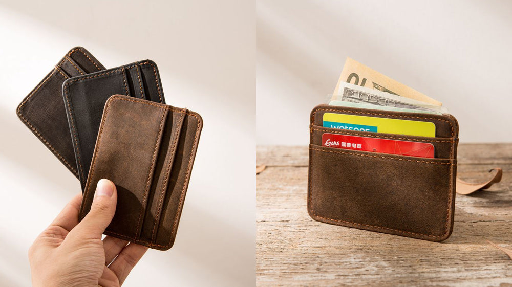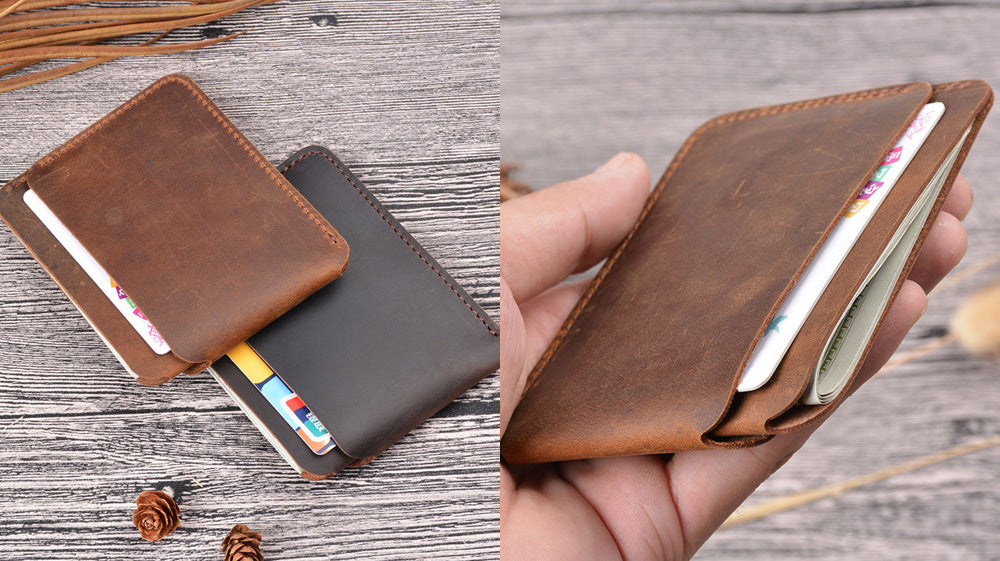 - A wallet that's small and slim and you can easily put inside your pocket, this might be what you're looking for. Crafted and made of leather, it is made simply to hold cards and half bills/cash. It is available in three colors- brown, coffee and black. It measures 11.5cm x 8cm x 0.5cm. It is lightweight, making it comfortable to bring.