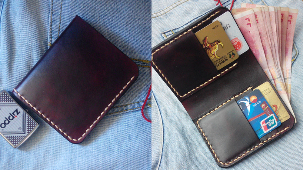 - If you like stitched designs on your wallet, then this slim wallet could be yours! Vintage and beautifully styled with stitches on the edges, this wallet can actually provide storage for both cash and cards. It is easy to carry because of its weight and convenience-- making it a likable item by both men and women.