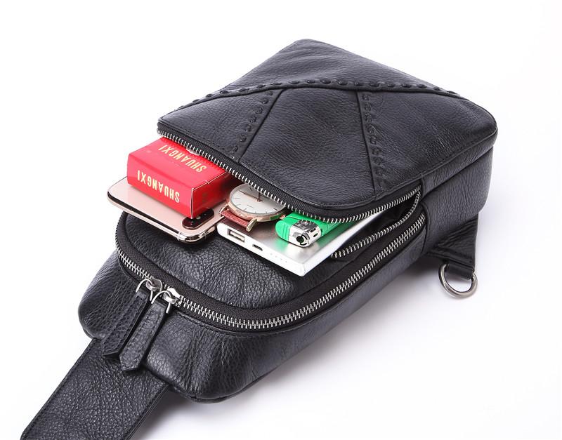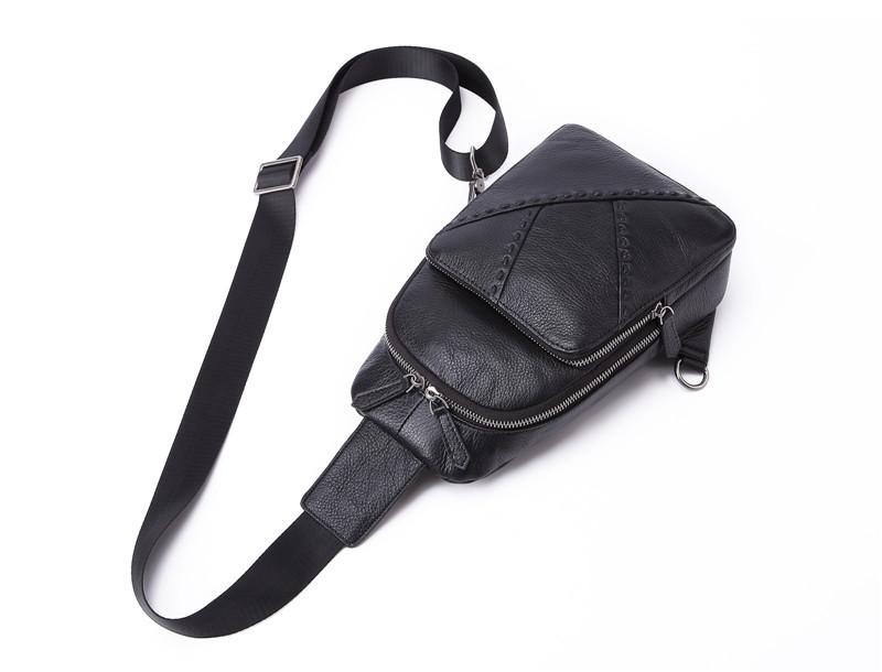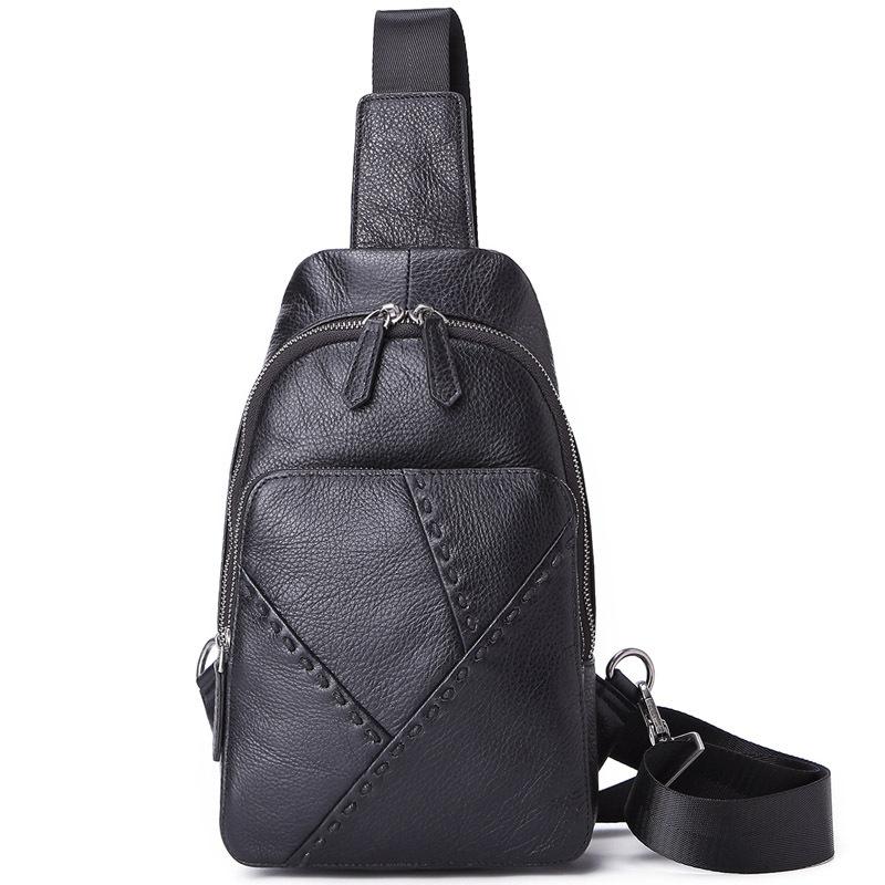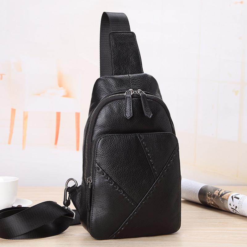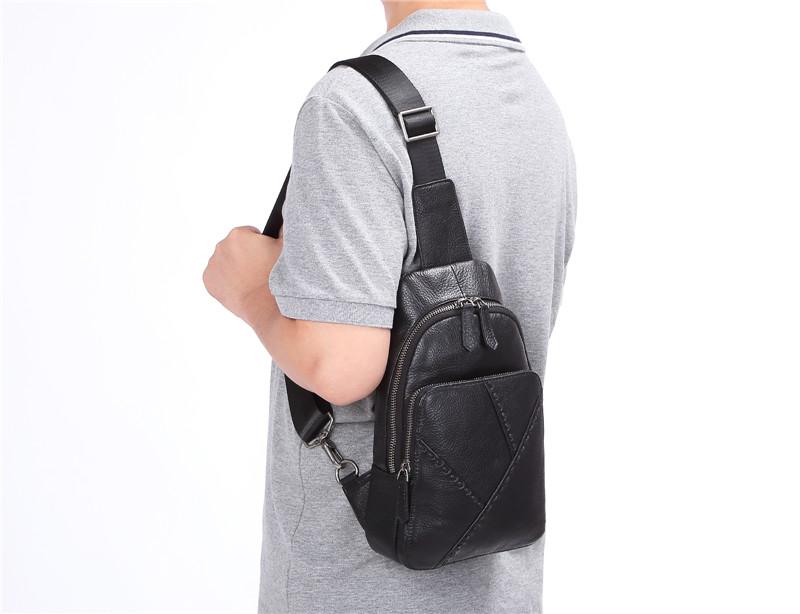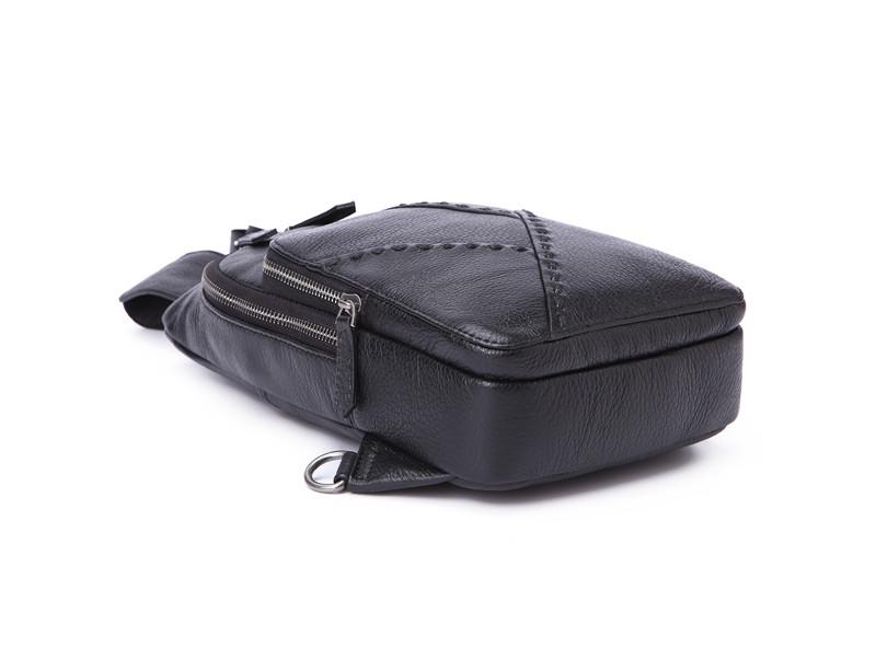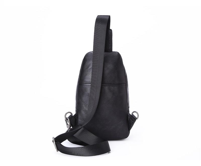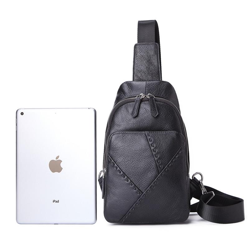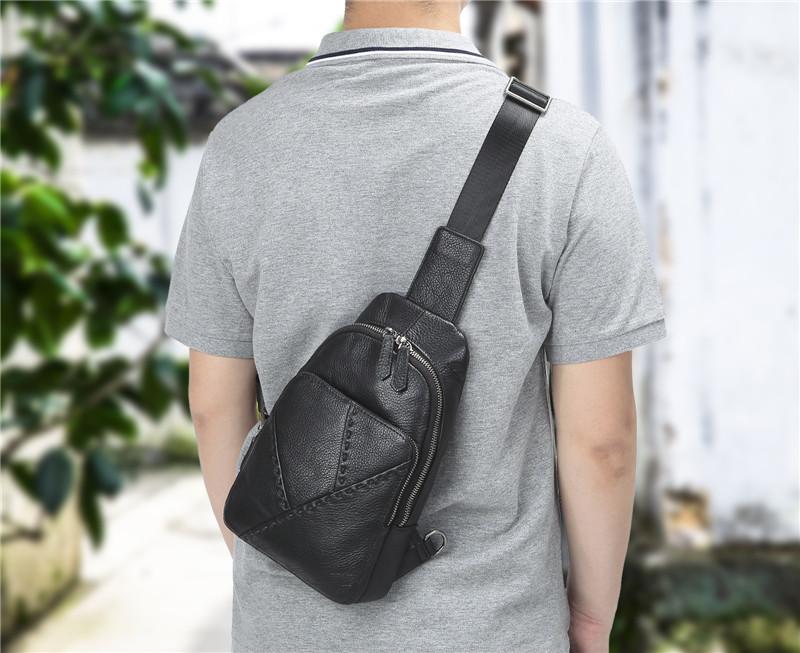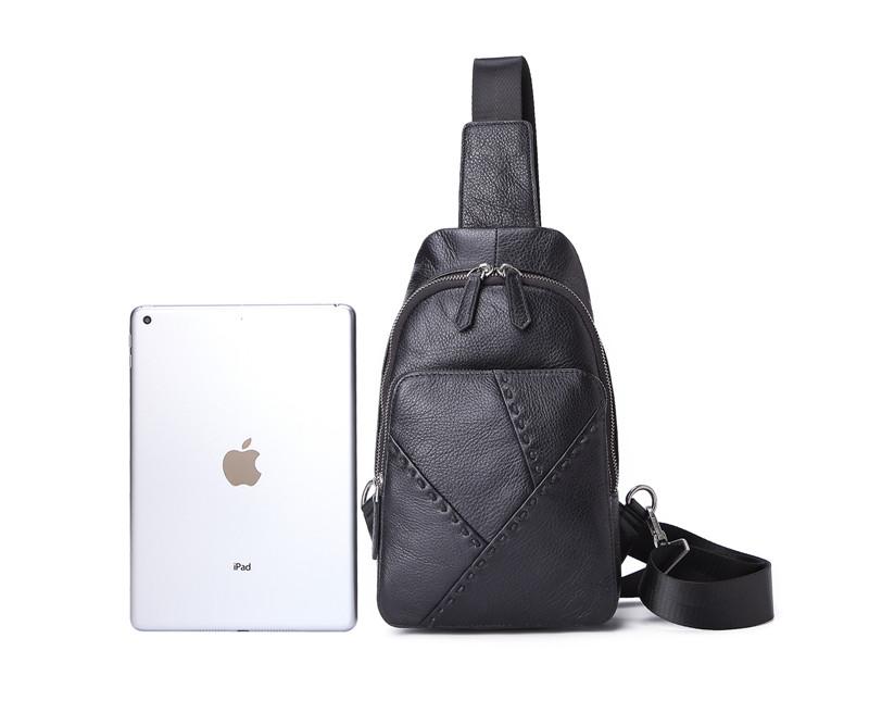 Design: Badass Black Leather Backpack Men's 8-inch Mesenger Bag Sling Bag Chest Bag One shoulder Backpack Sports Bag For Men