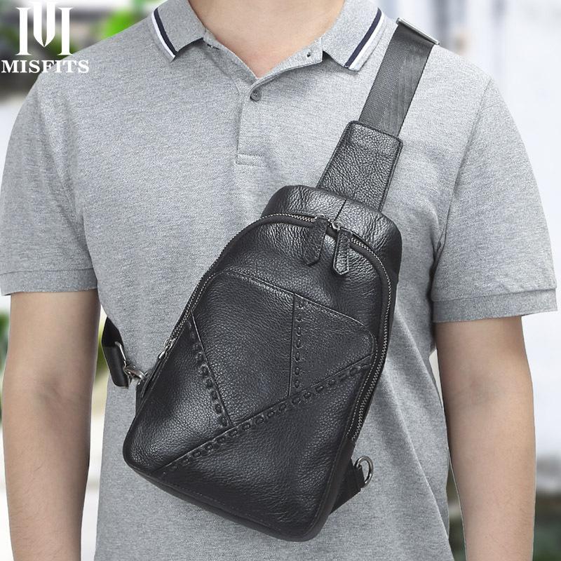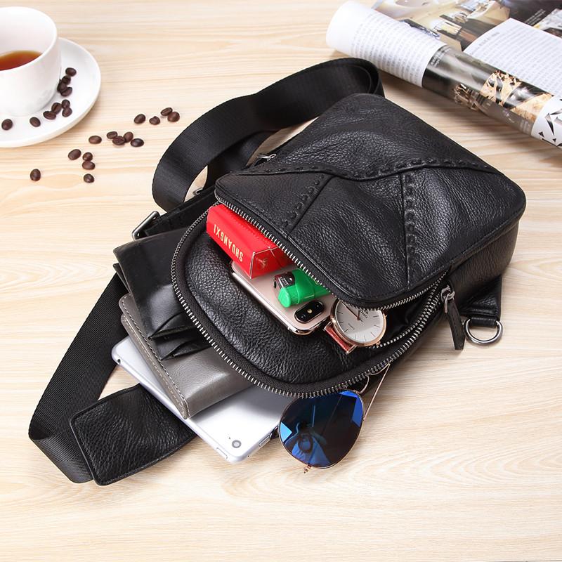 Style: Badass Black Leather Backpack Men's 8-inch Mesenger Bag Sling Bag Chest Bag One shoulder Backpack Sports Bag For Men