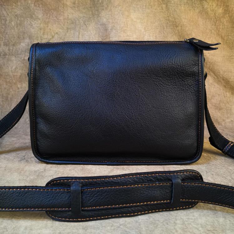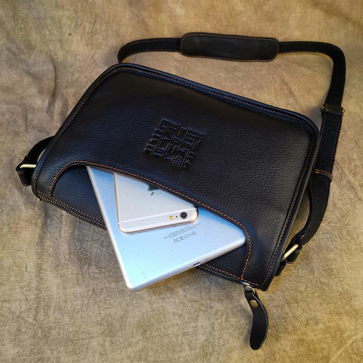 Design: BADASS Black LEATHER MENS 10-inch Diagonal Bag SHOULDER BAG SIDE BAG COURIER BAG IPAD MESSENGER BAG FOR MEN