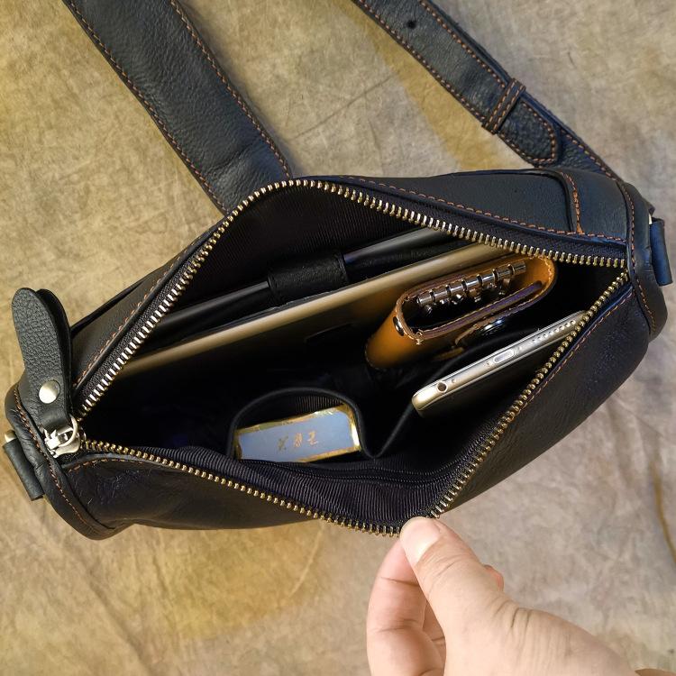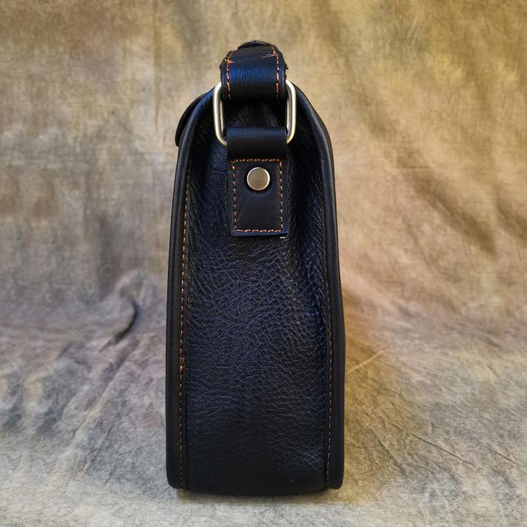 Style: BADASS Black LEATHER MENS 10-inch Diagonal Bag SHOULDER BAG SIDE BAG COURIER BAG IPAD MESSENGER BAG FOR MEN