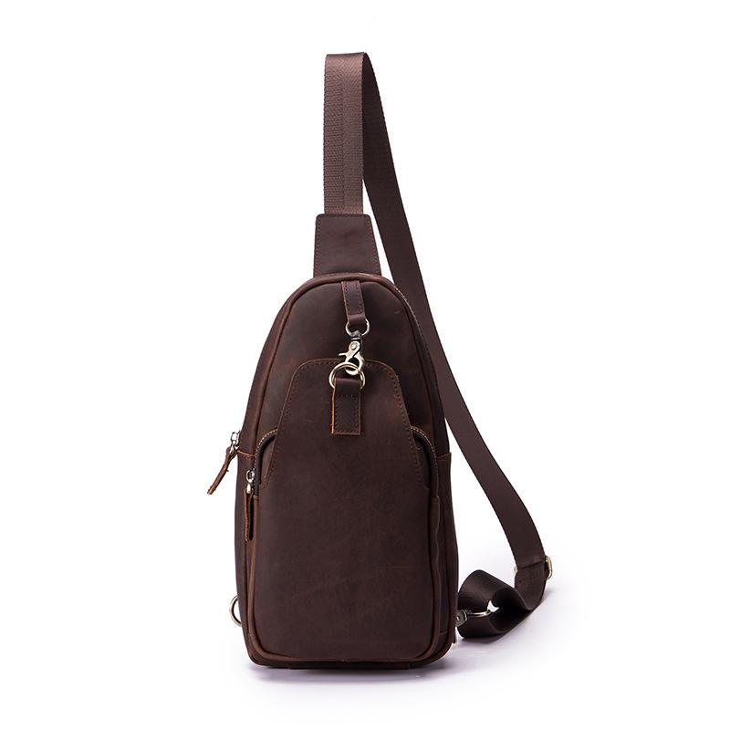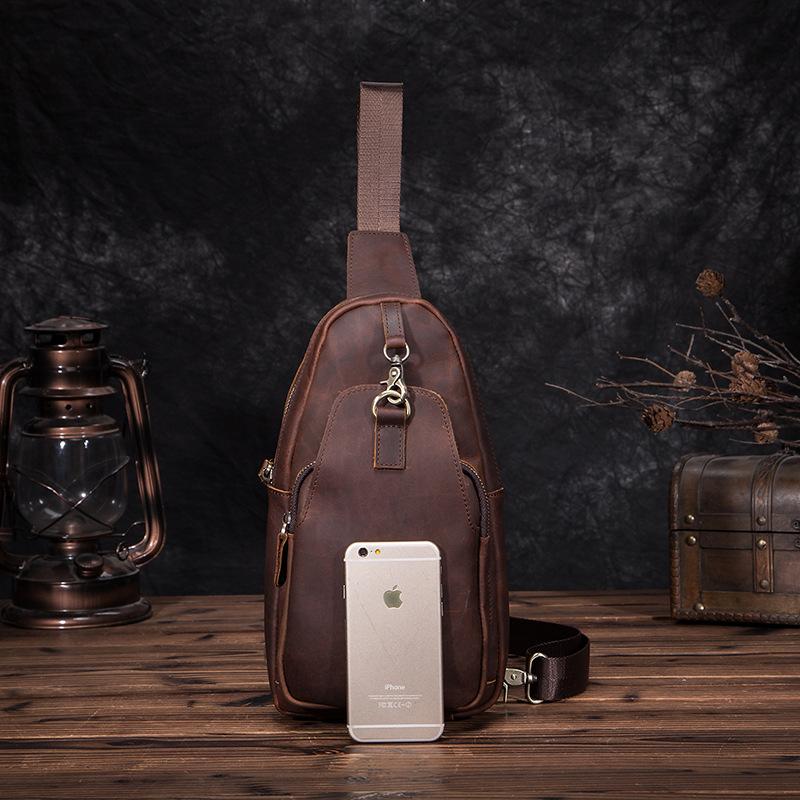 Style: Badass Brown Leather Men's Sling Bag Chest Bag Vintage One shoulder Backpack For Men