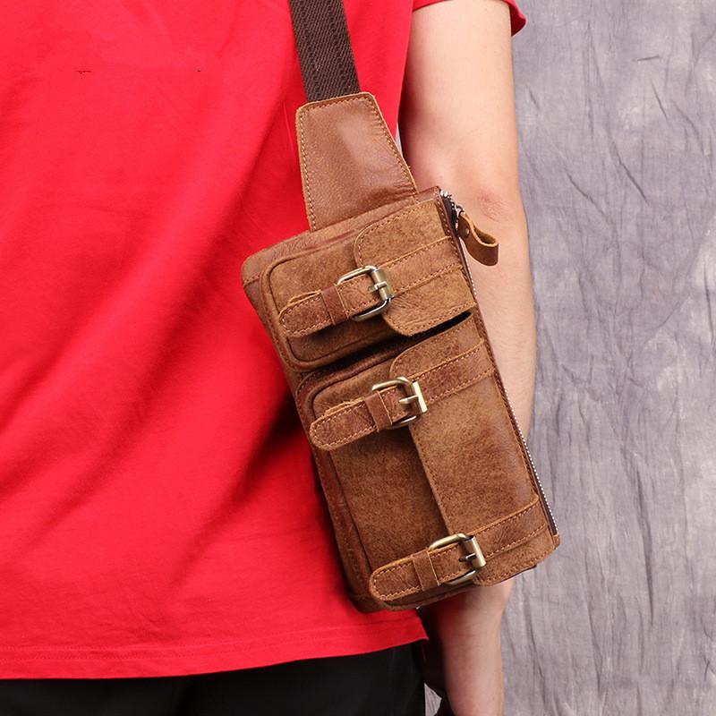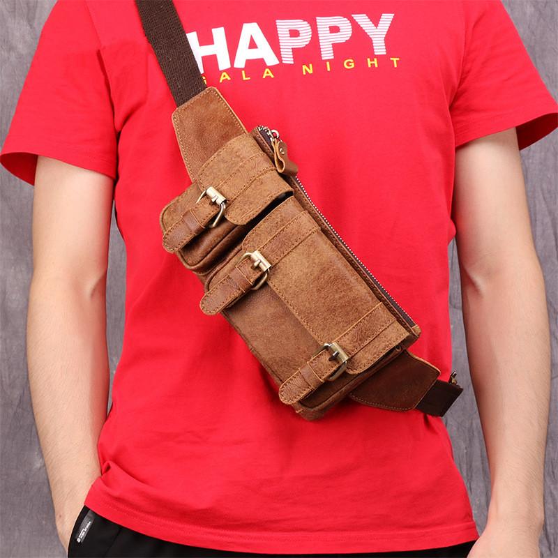 Style: Badass Leather Fanny Pack Men's Brown Hip Bag Chest Bag Bum Bag Waist Bag For Men