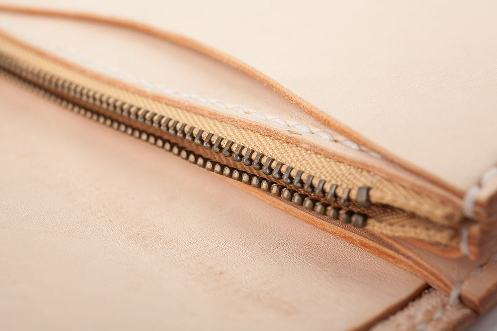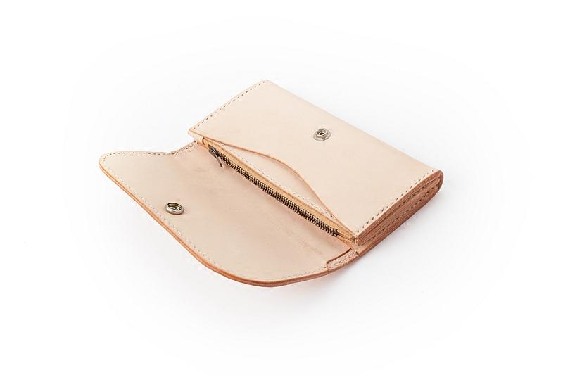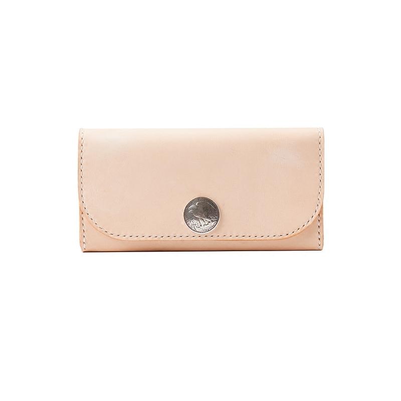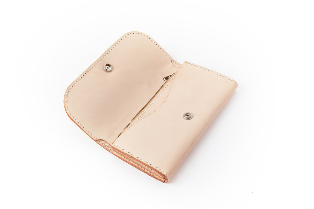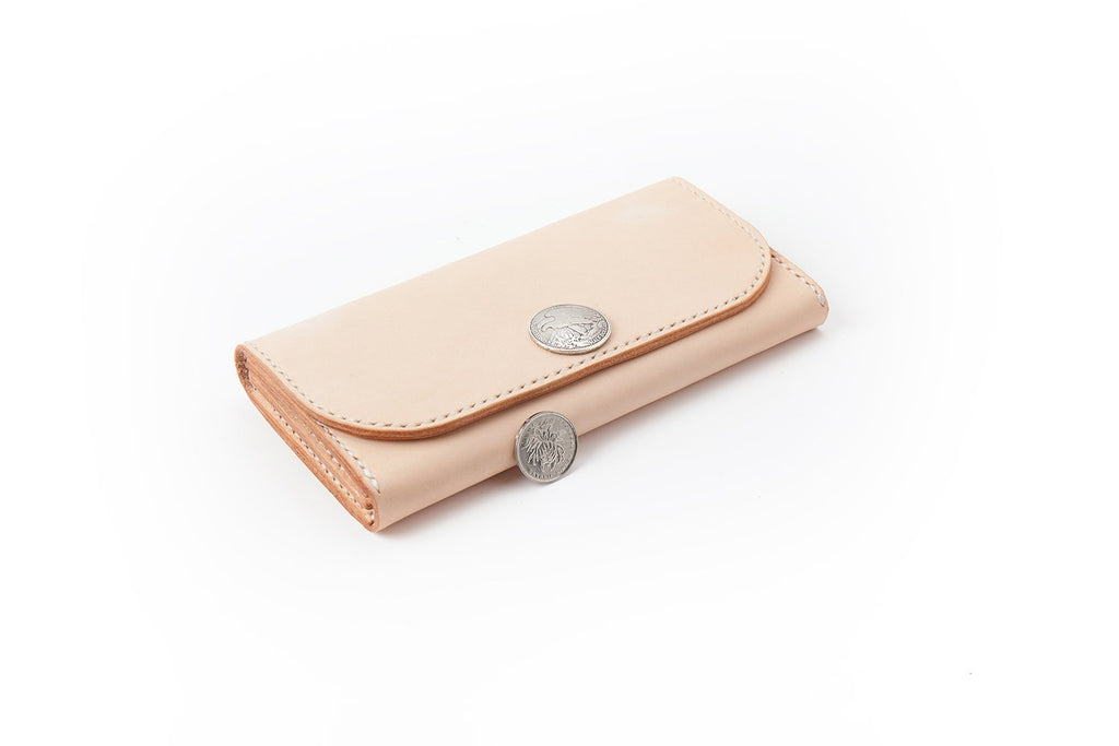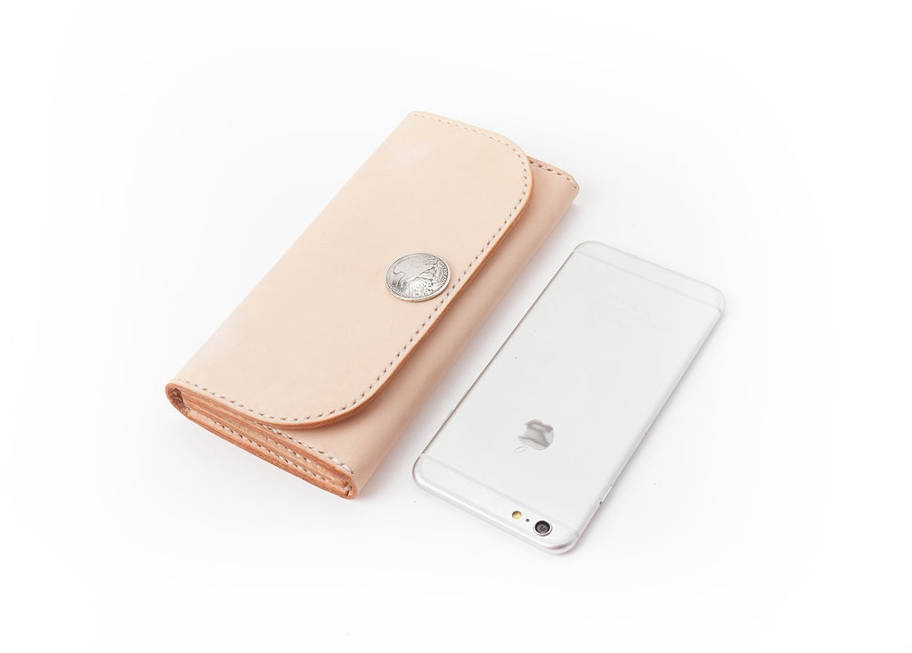 Design: Beige Handmade Leather Mens Long Wallet Bifold Card Wallets Buckle Wallet For Men