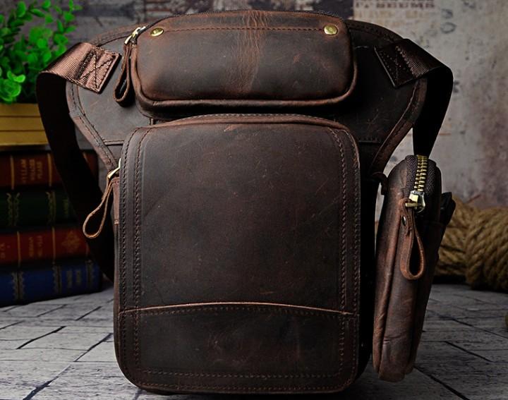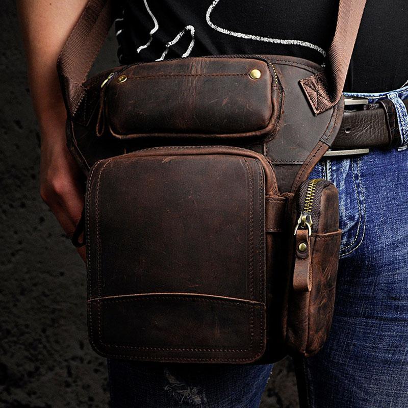 Design: Biker Mens Leather Drop Leg Bag Waist Bag Belt Pouch Pack Side Bag for Men