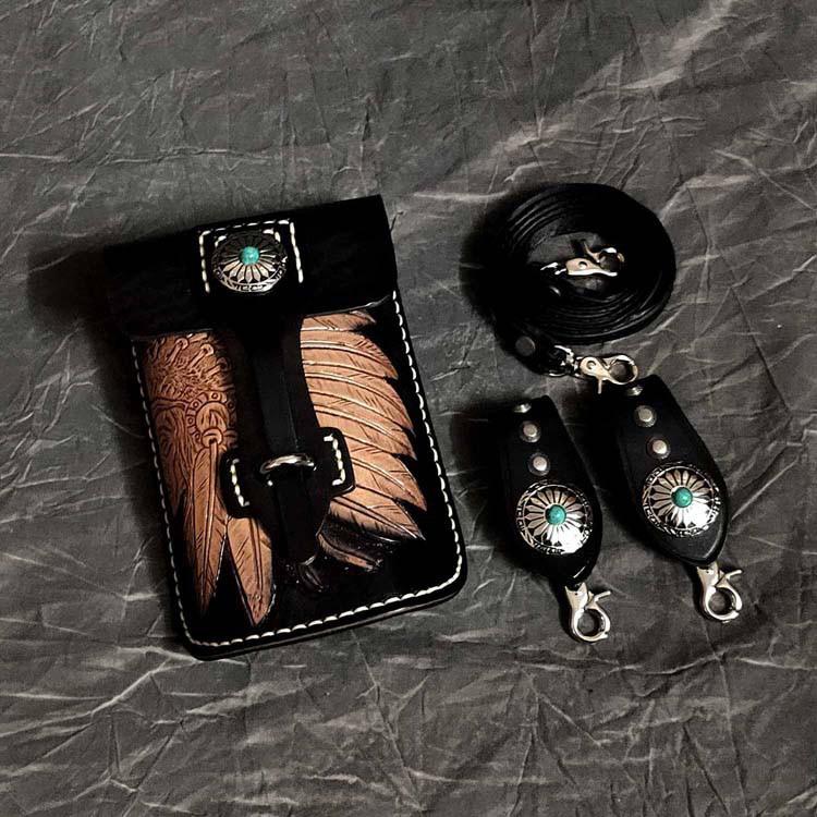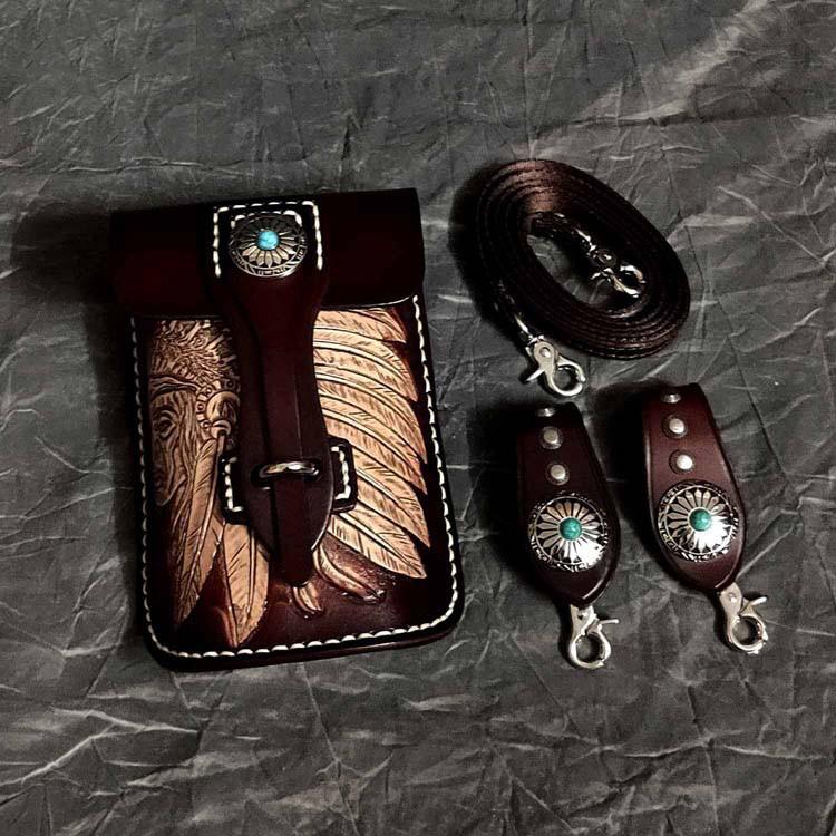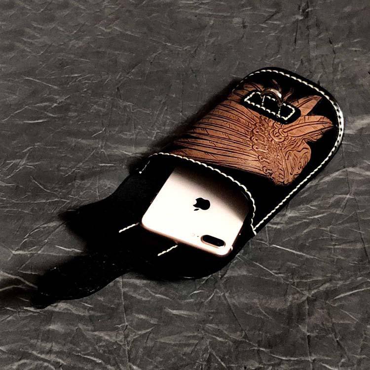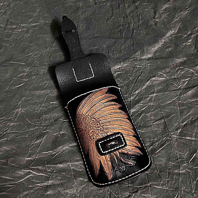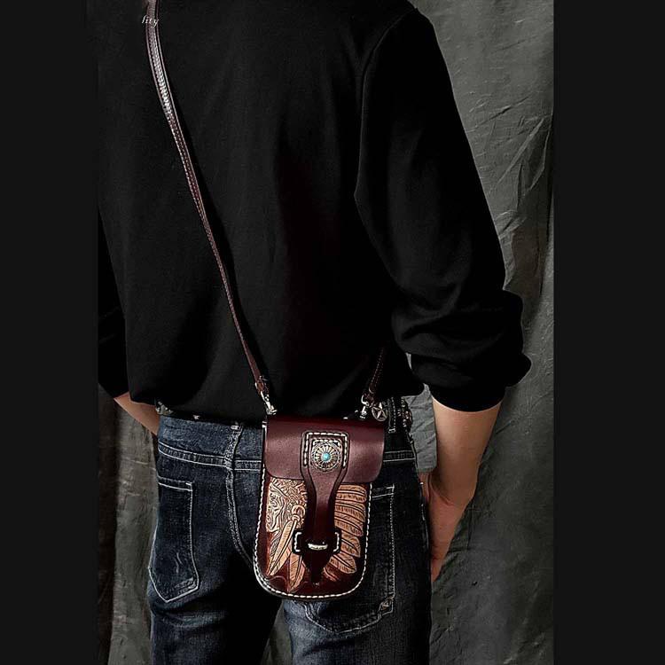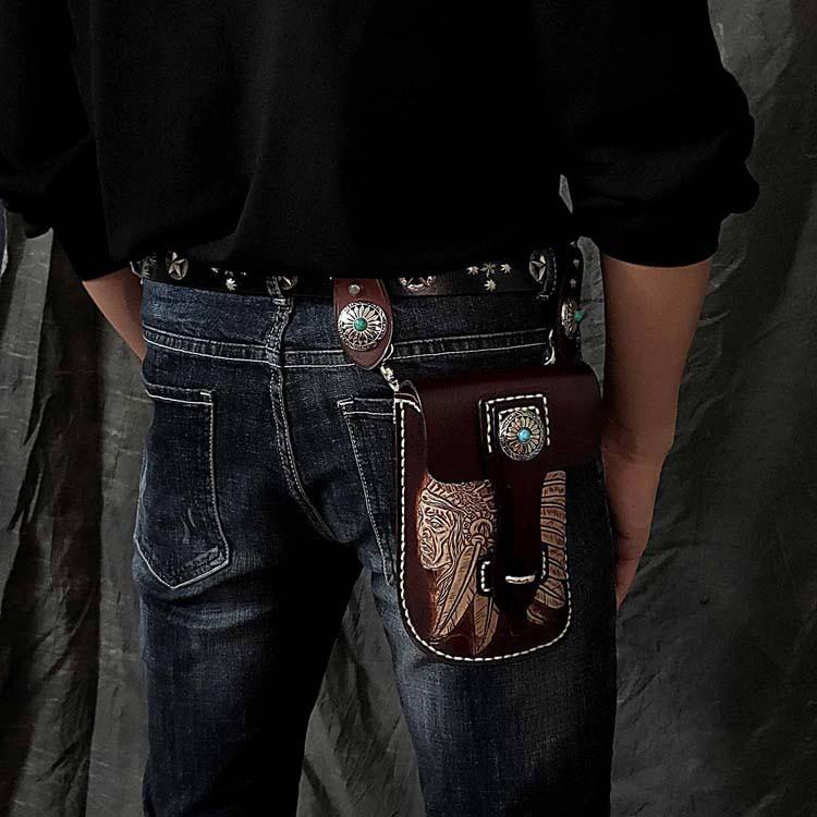 Black Badass Mens Indian Tooled Leather Waist Bag Side Bag Coffee Belt Pouch Belt Bag for Men