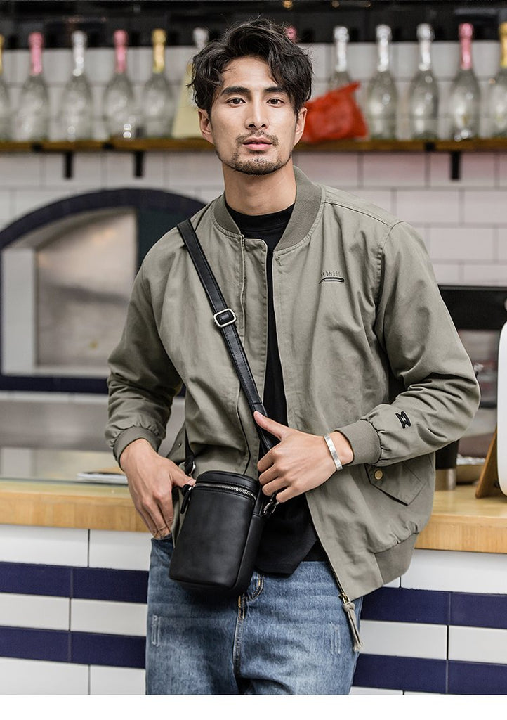 Style: Black Casual Leather Mens 8 inches Brown Messenger Bag Phone Bag Sling Bag For Men