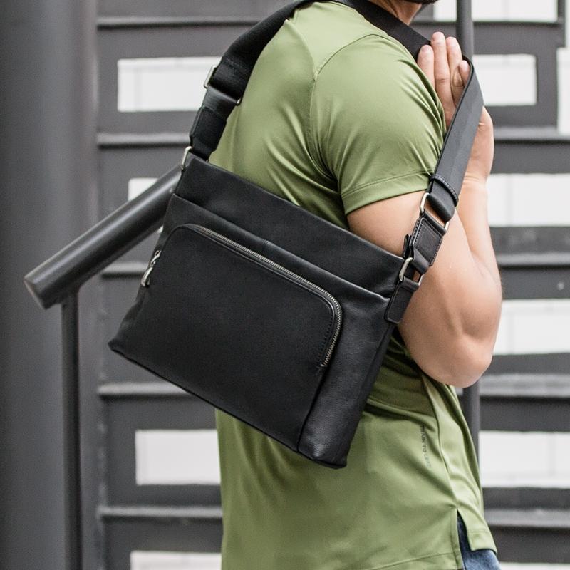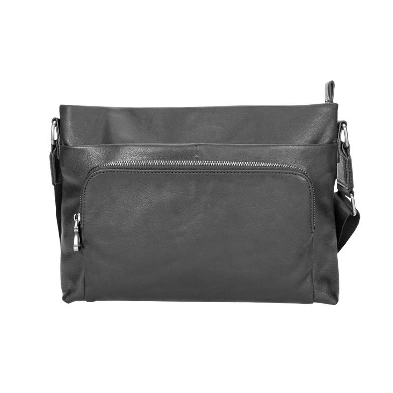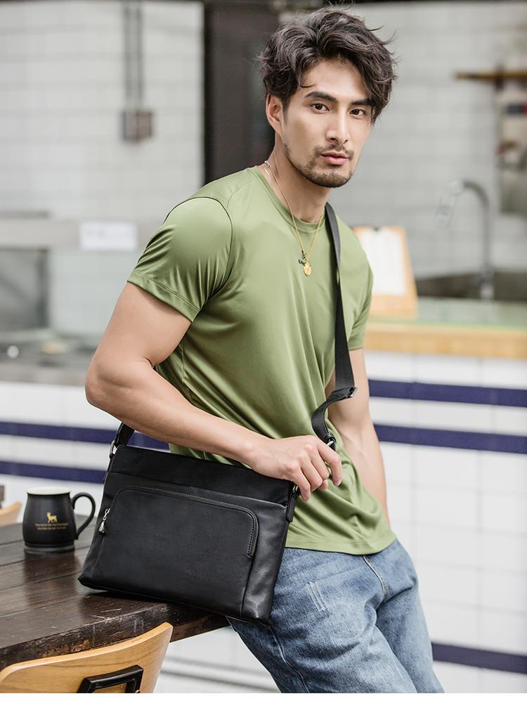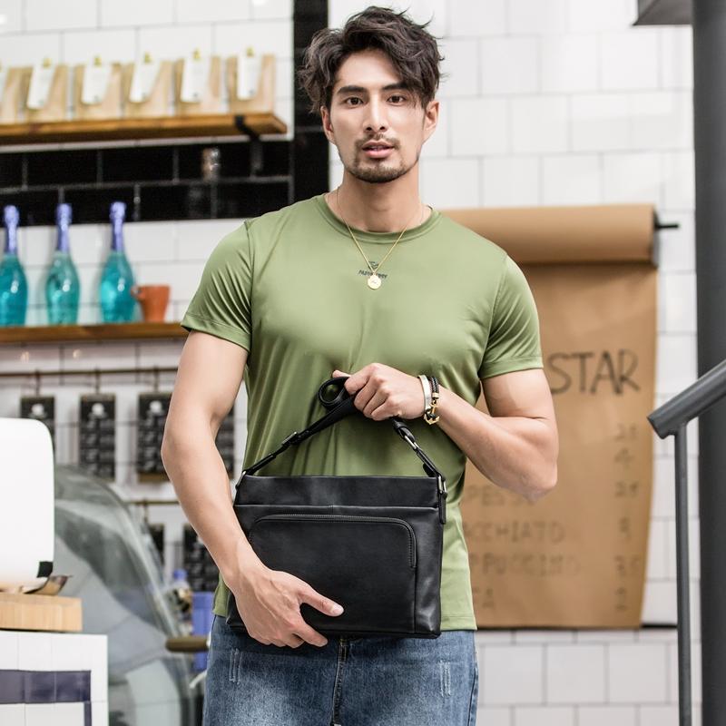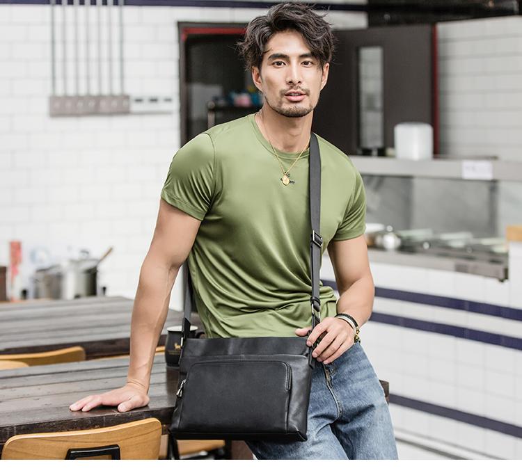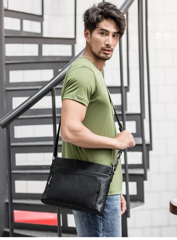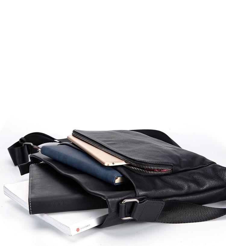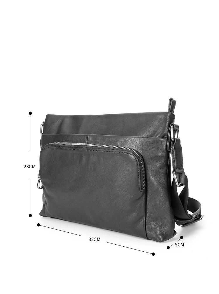 Design: Black Casual Leather Mens 10 inches Large Shoulder Bag Black Messenger Bags Soft Side Bag for Men