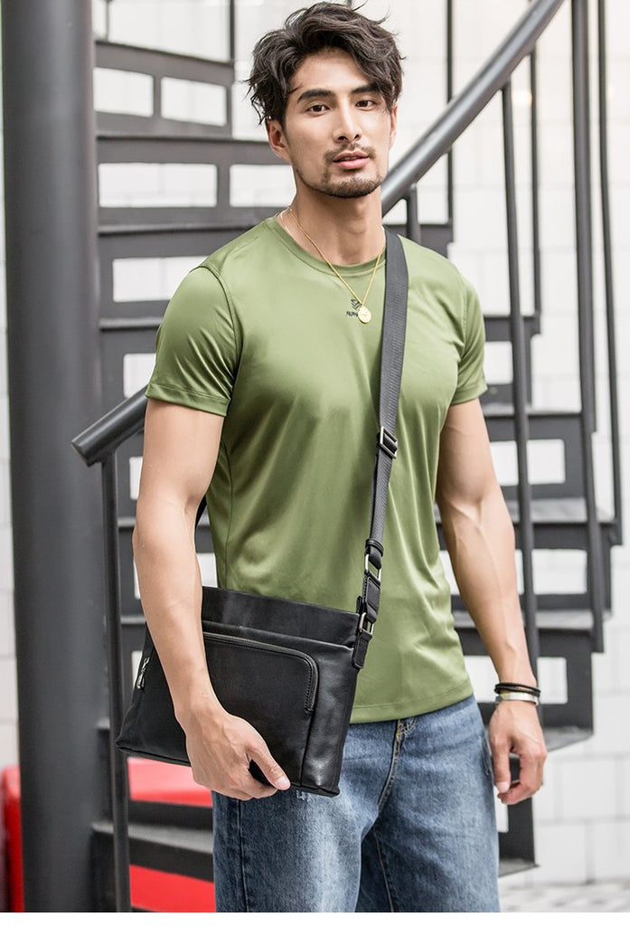 Style: Black Casual Leather Mens 10 inches Large Shoulder Bag Black Messenger Bags Soft Side Bag for Men
