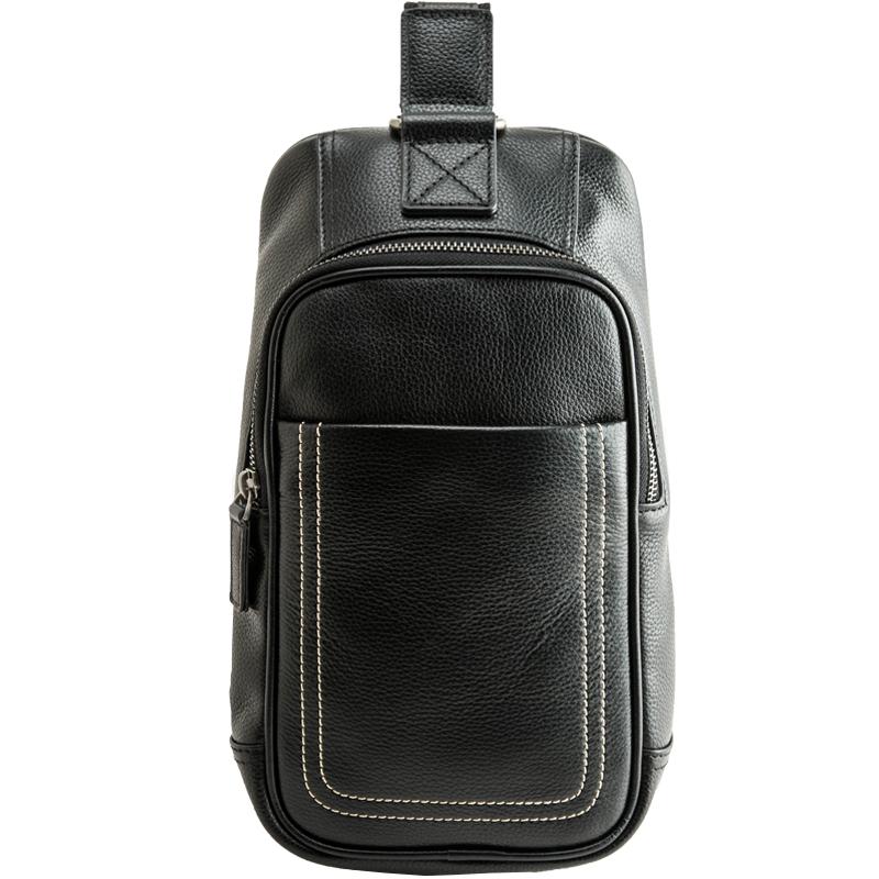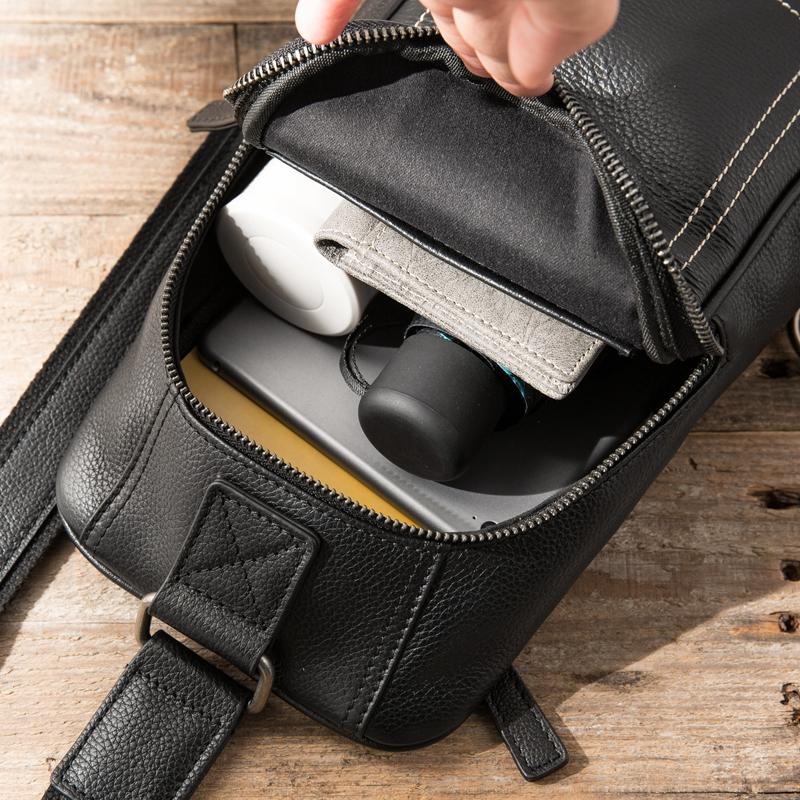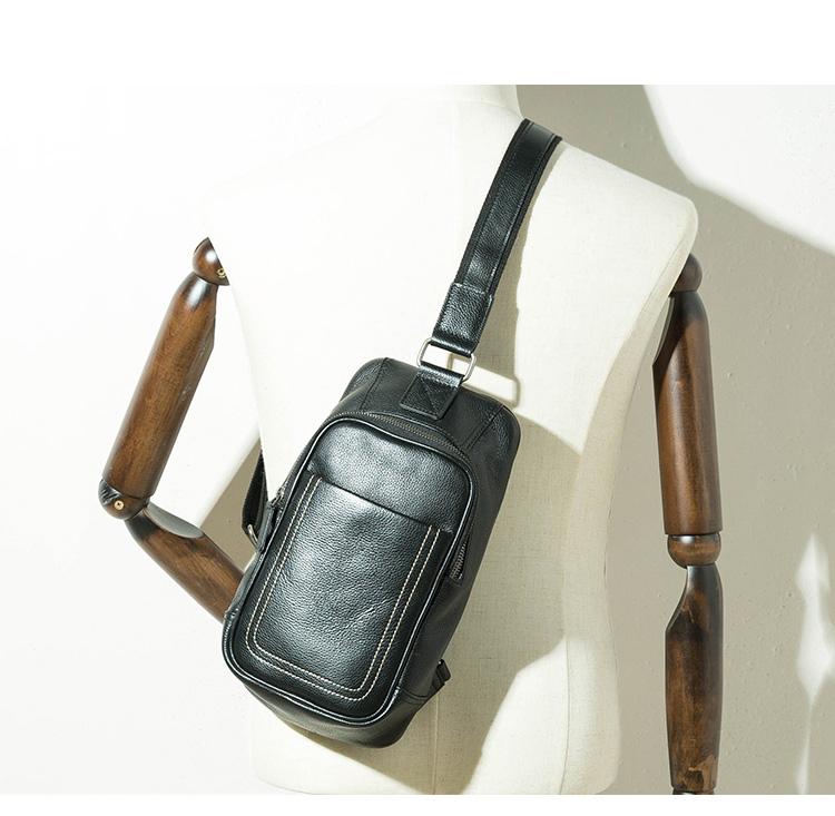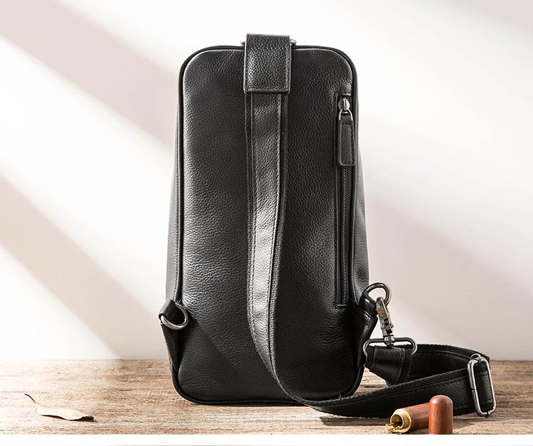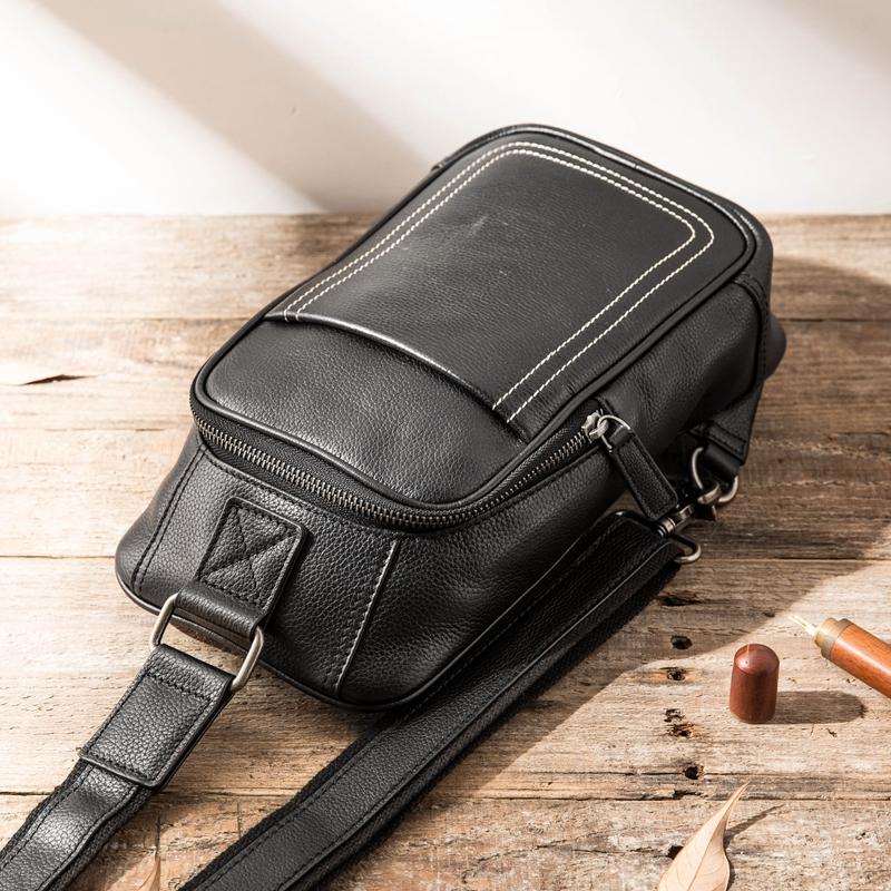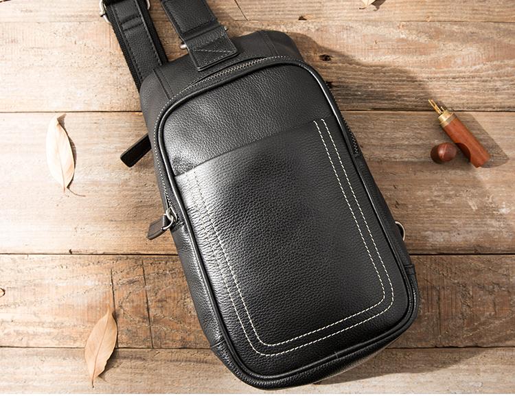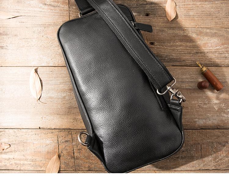 Design: Black Casual Leather Mens 8inches Large Messenger Bag Chest Bag Black One Shoulder Backpack for Men