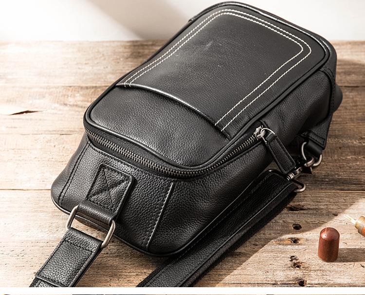 Style: Black Casual Leather Mens 8inches Large Messenger Bag Chest Bag Black One Shoulder Backpack for Men