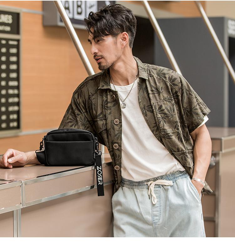 Style: Casual Black Mens NYLON Mini Chest Bag Postman Bag Black Small Messenger Bags Side Bag for Men