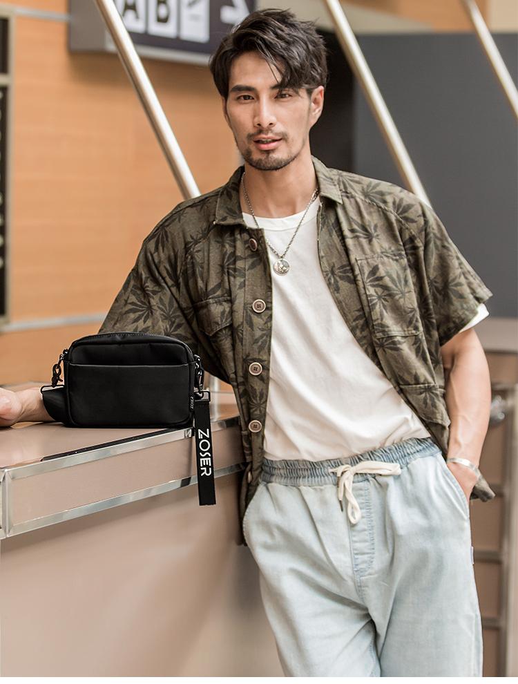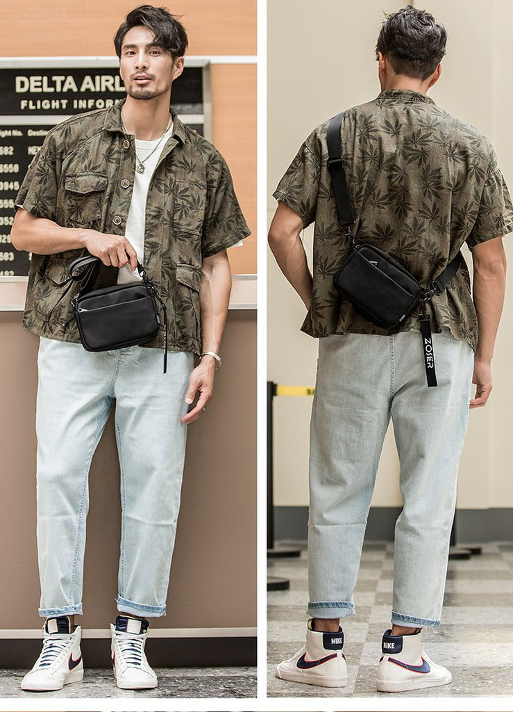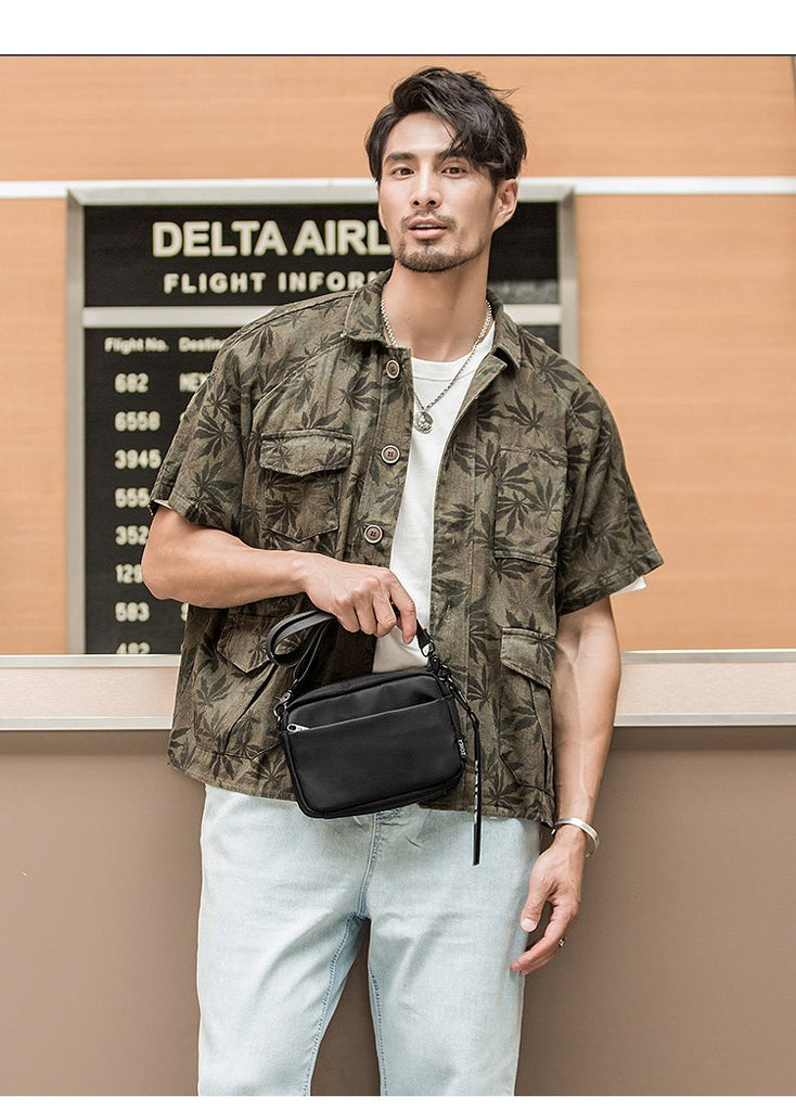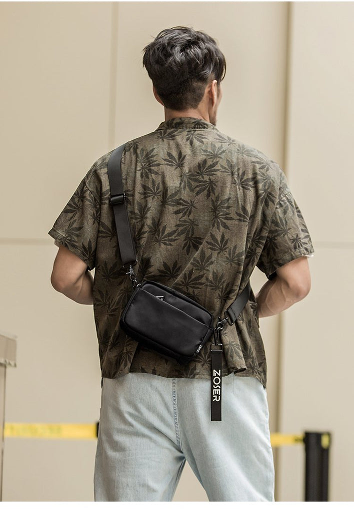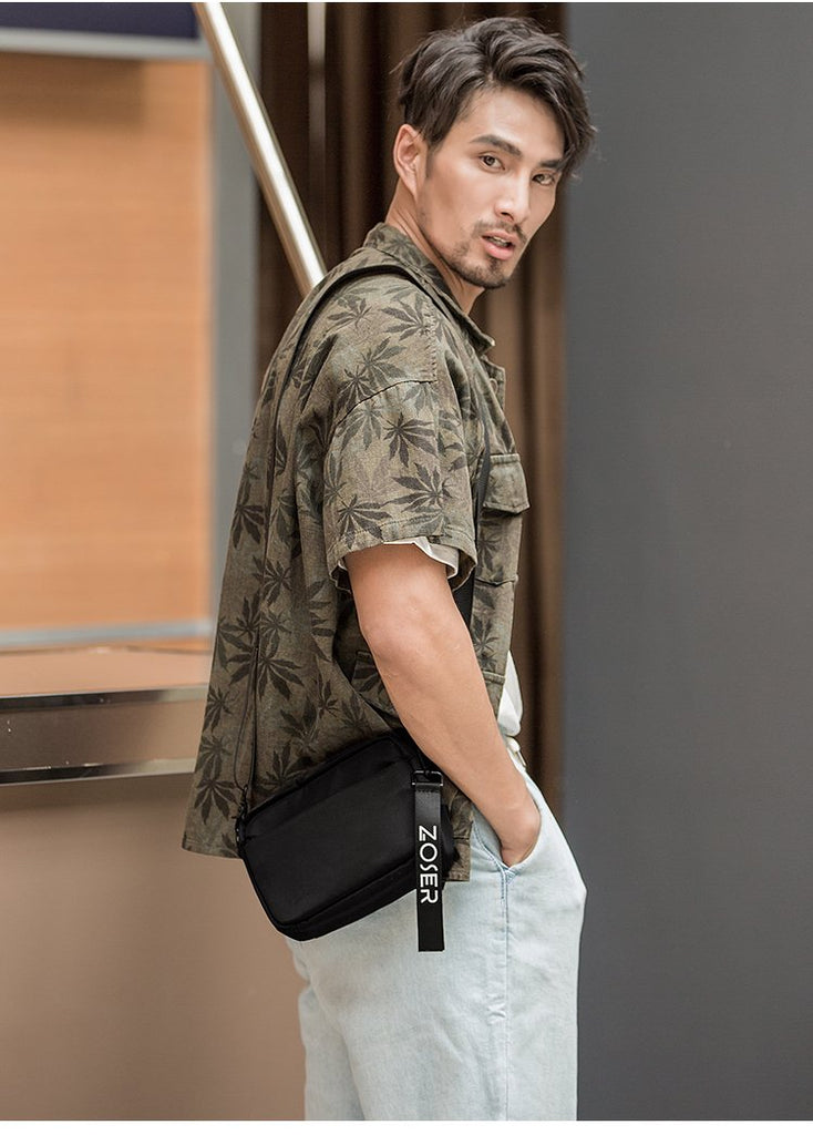 Design: Casual Black Mens NYLON Mini Chest Bag Postman Bag Black Small Messenger Bags Side Bag for Men