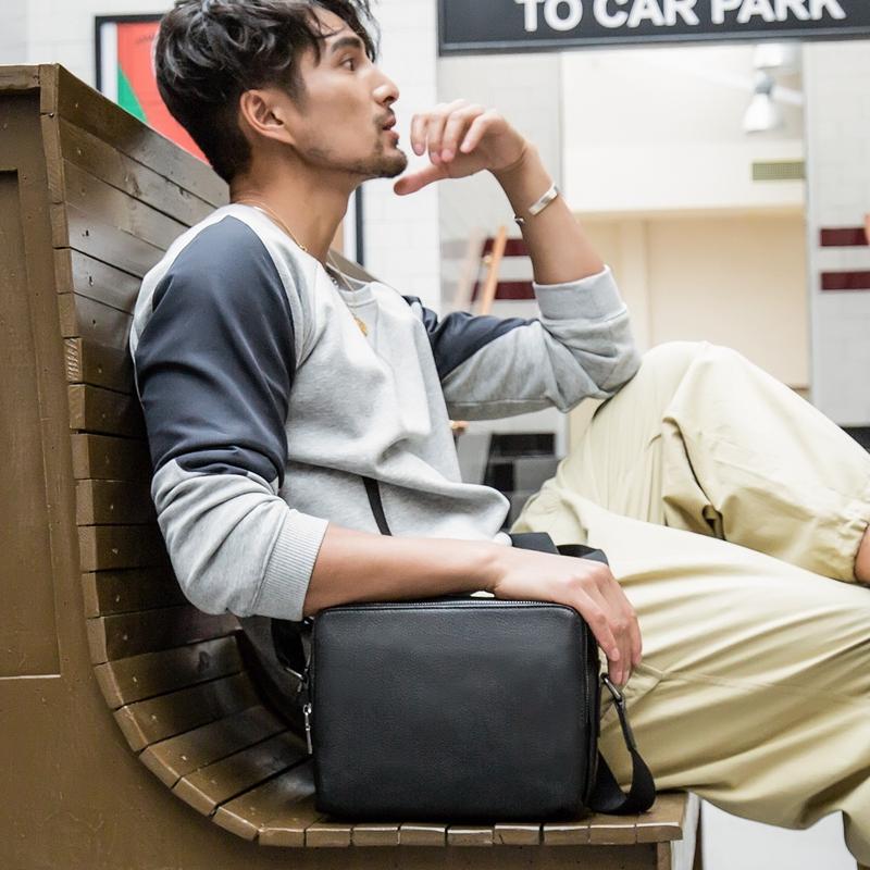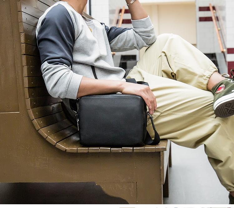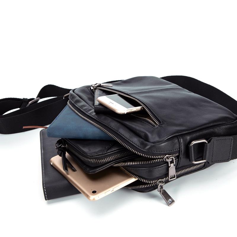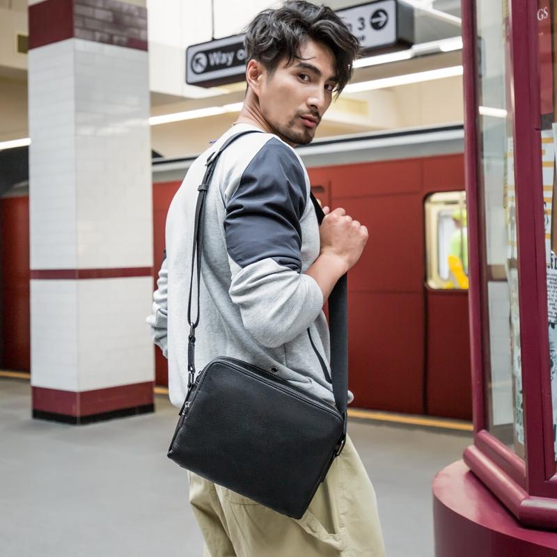 Black Cool Leather Mens 10 inches Side Bag Postman Bag Black Black Messenger Bags Courier Bag for Men