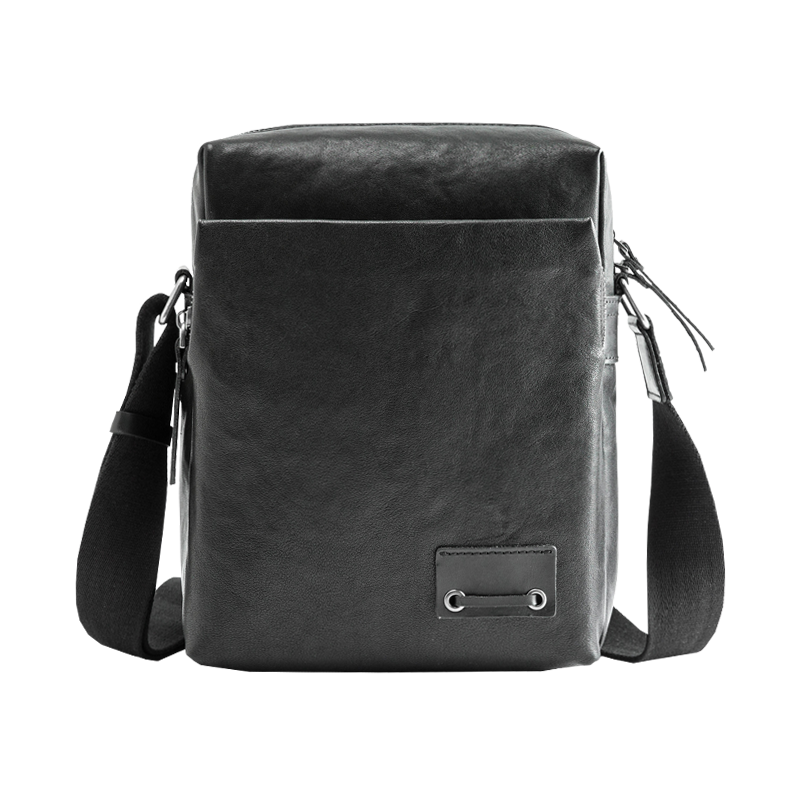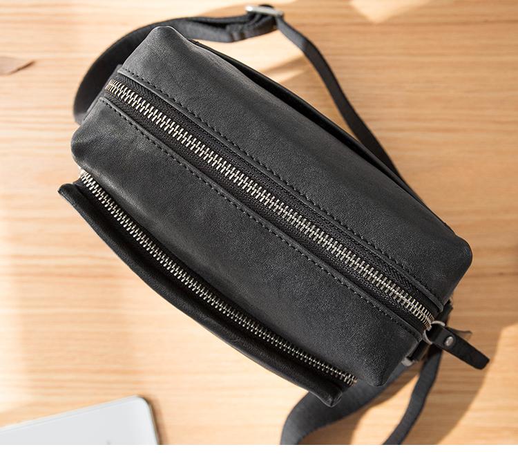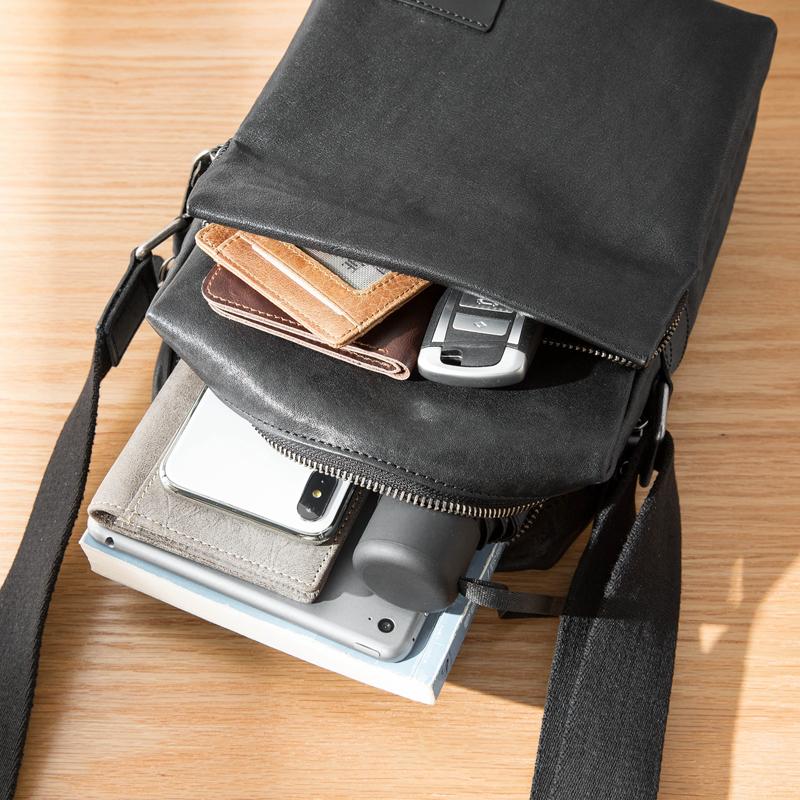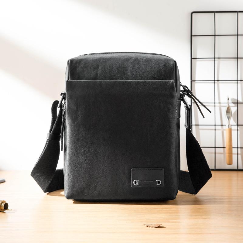 Design: Black Cool Leather Mens 10 inches Large Messenger Bags Vertical Shoulder Bags for Men