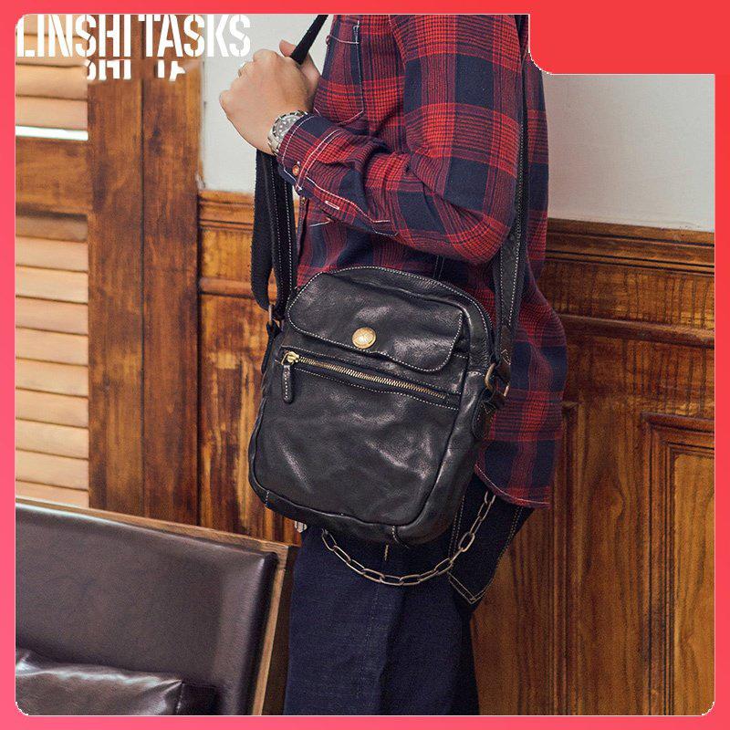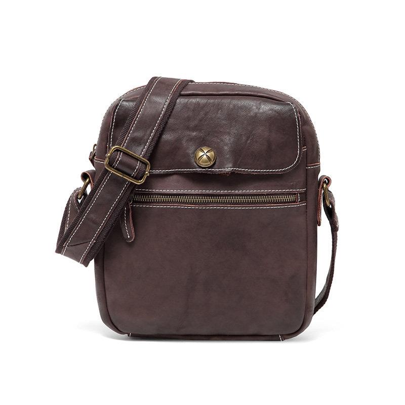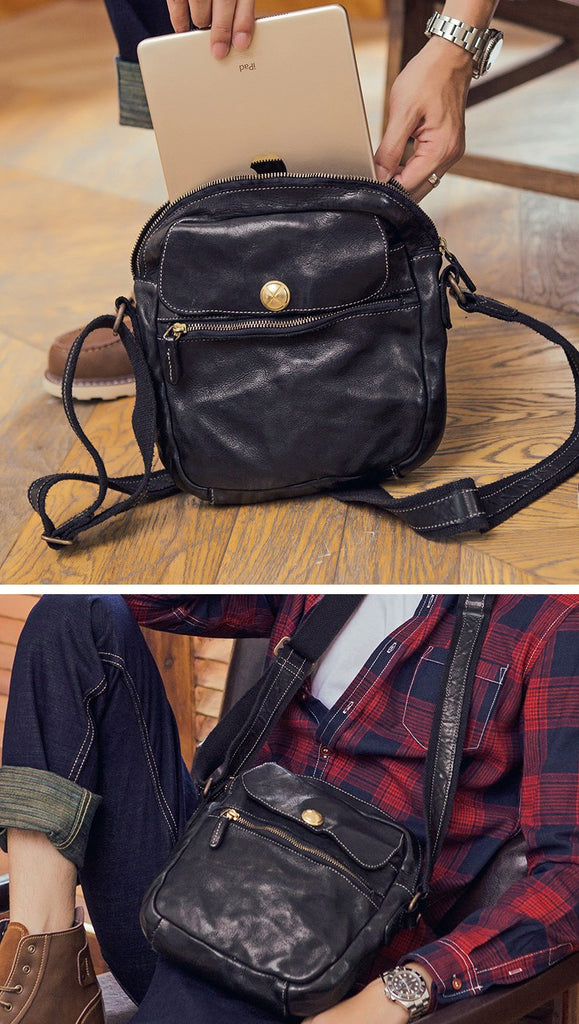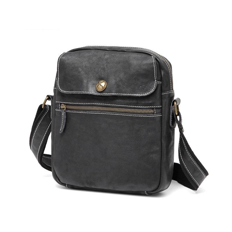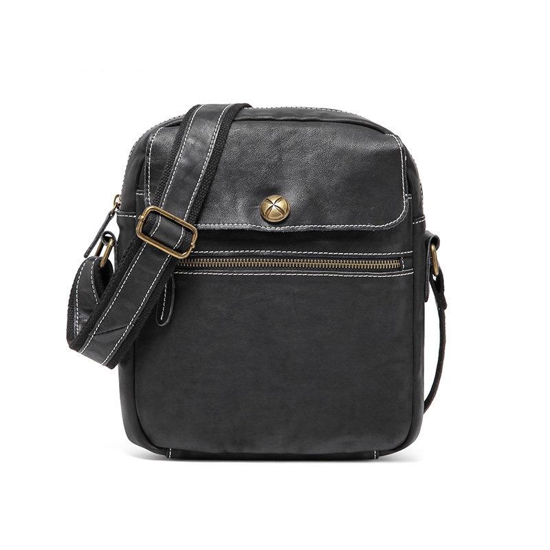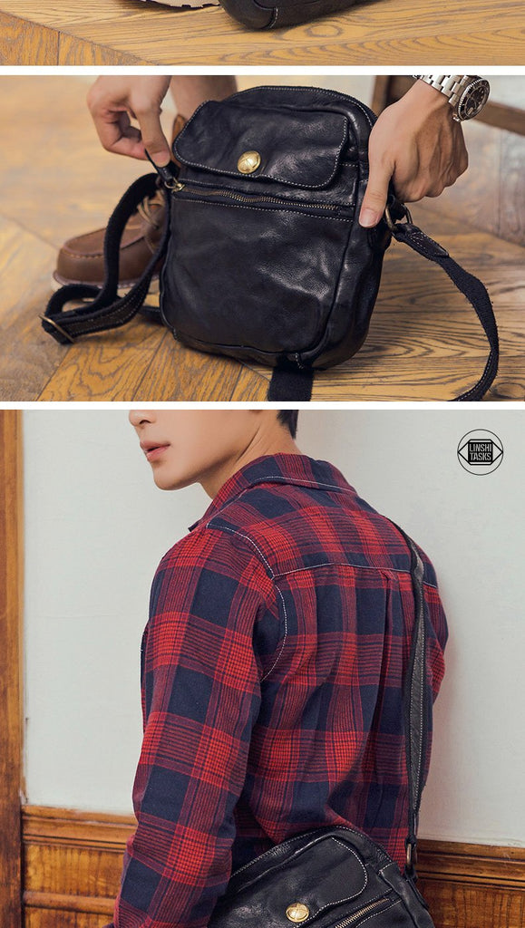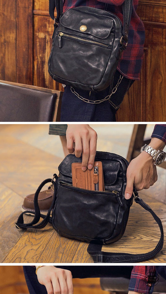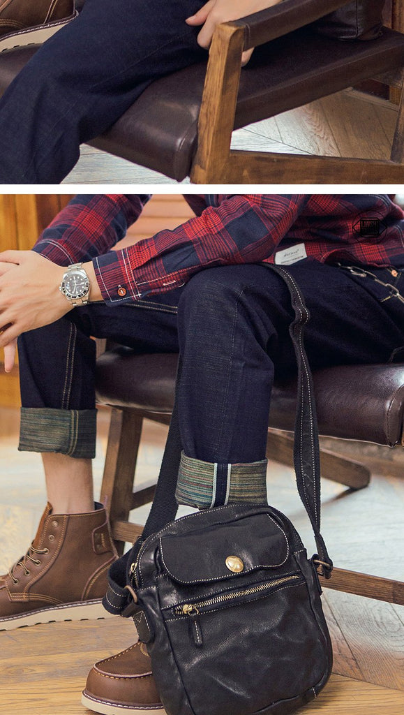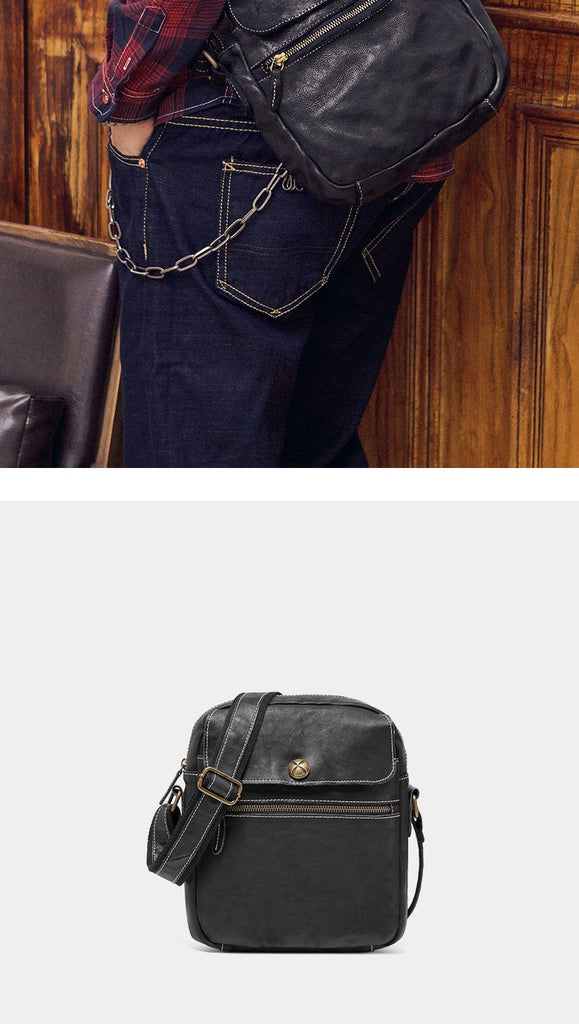 Design: Black Cool Leather Mens 8 inches Vertical Side Bag Messenger Bags Dark Brown Casual Bicycle Bags for Men