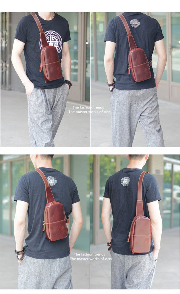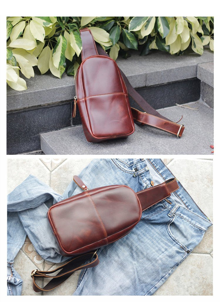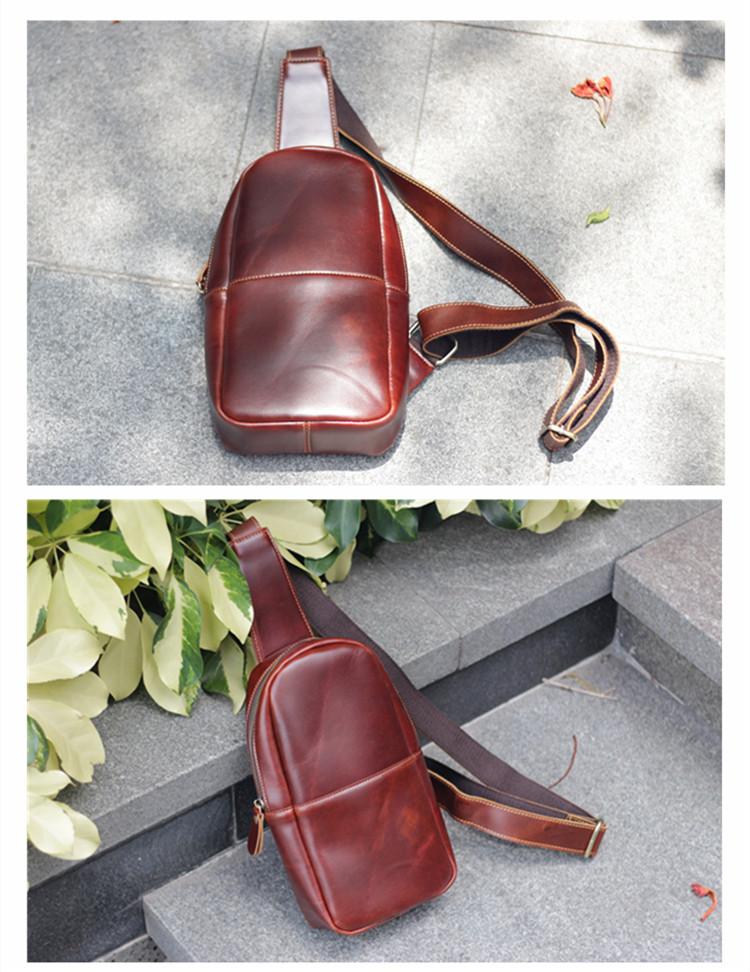 Brown Cool Leather Mens Sling Bag Chest Bag Brown Sling Pack For Men