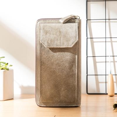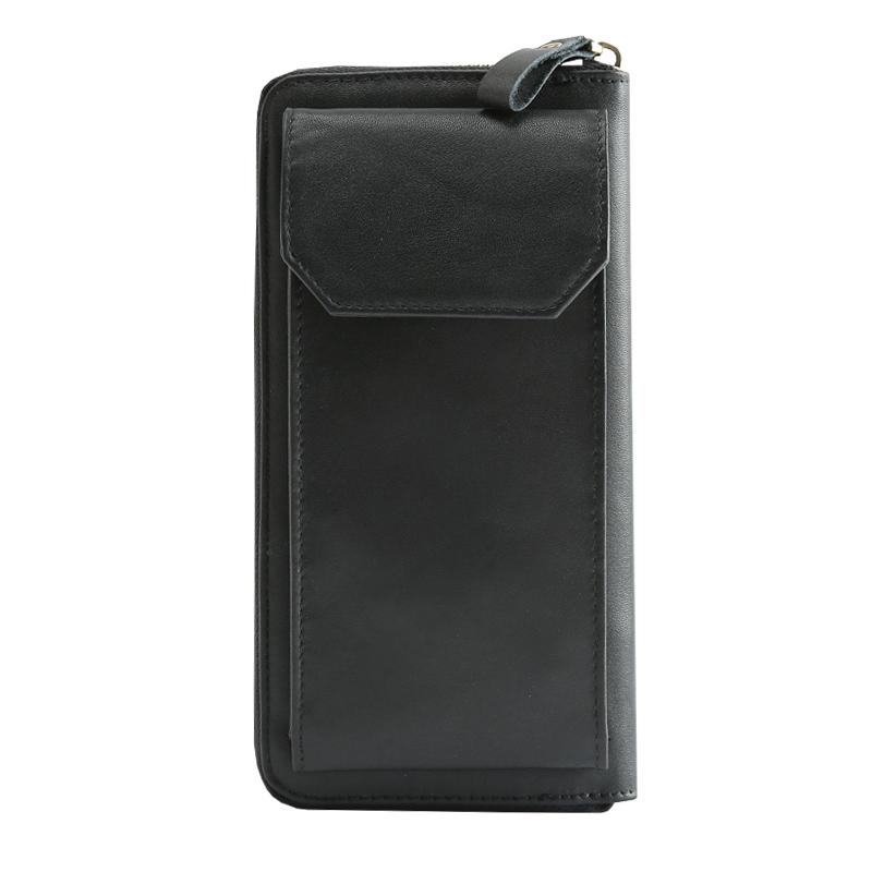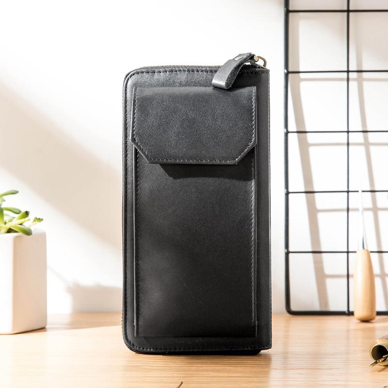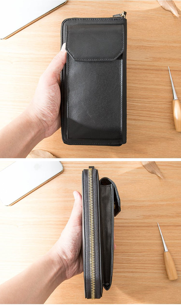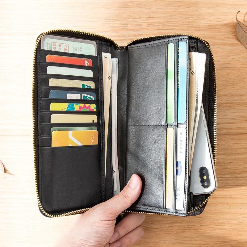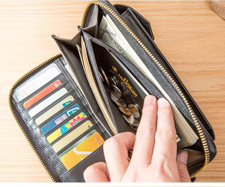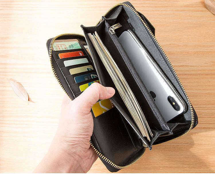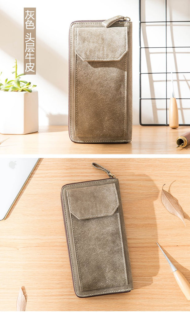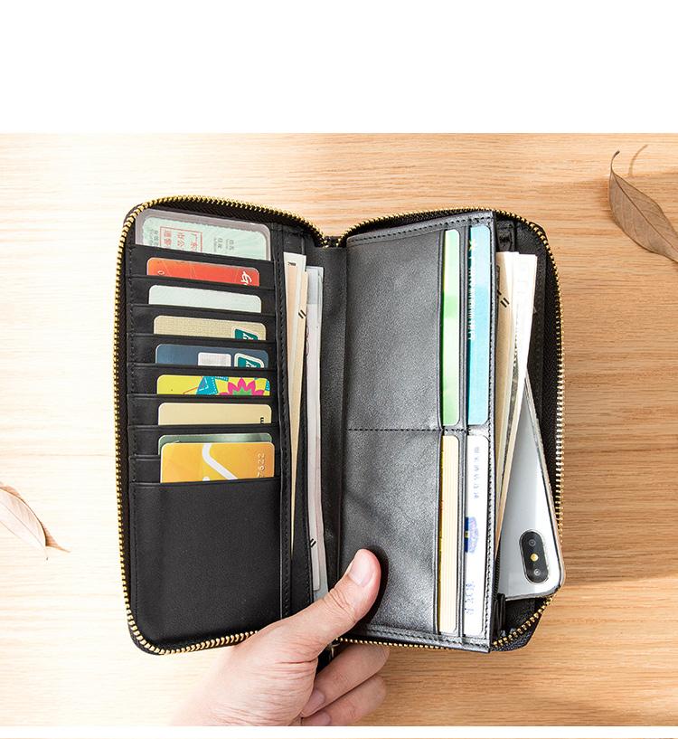 Black Cool Leather Mens Long Wallets Bifold Zipper Gray Long Wallet Card Wallet for Men