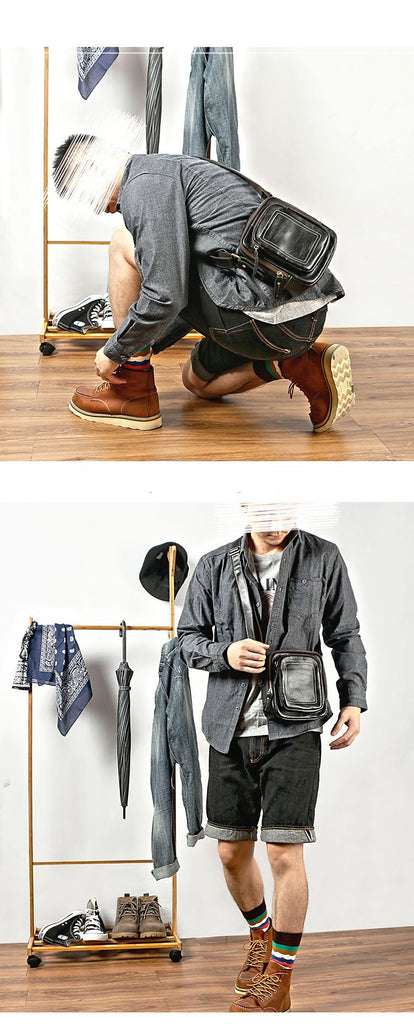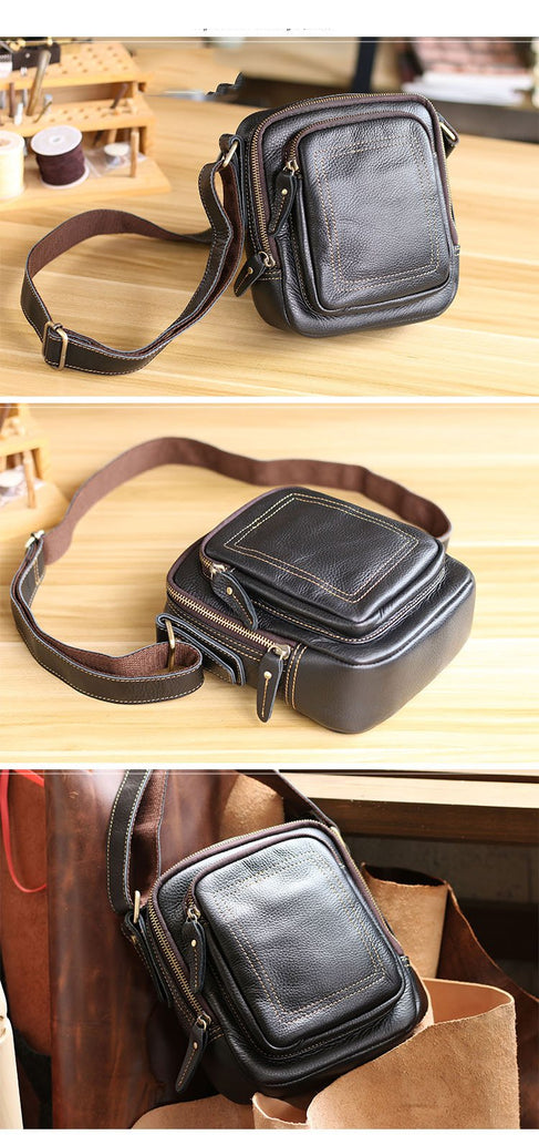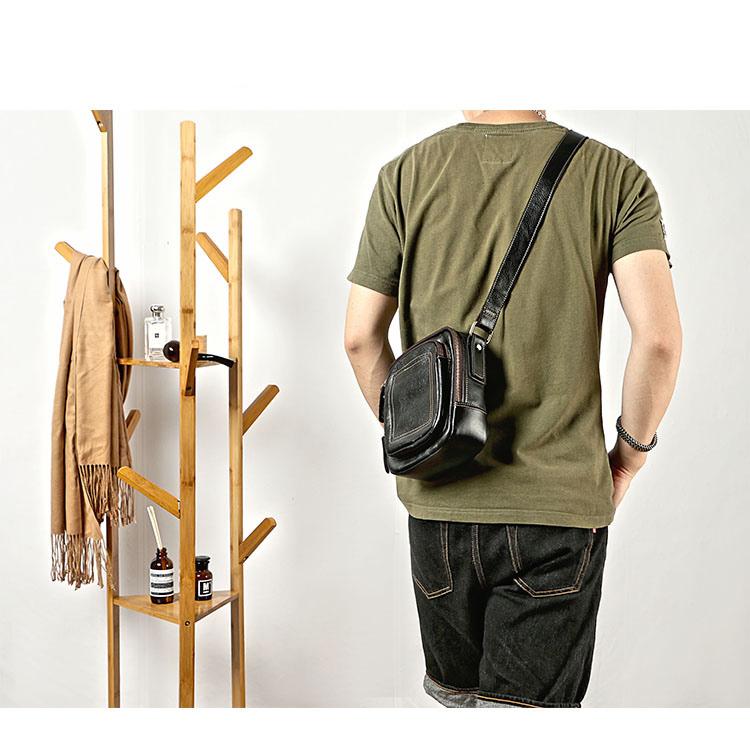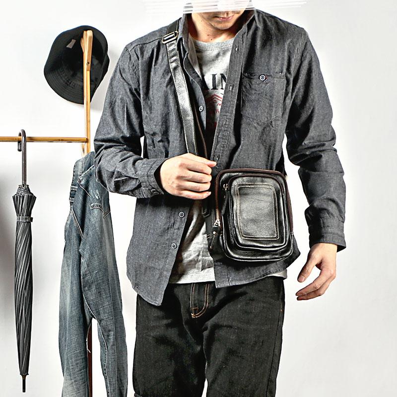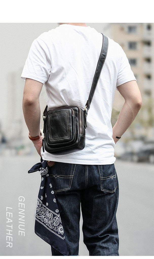 Style: Black Cool Leather Mens Small Postman Bag Messenger Bag Black Courier Bags For Men