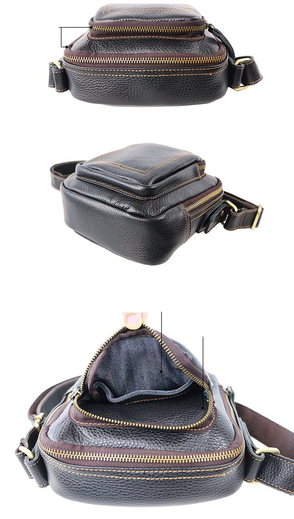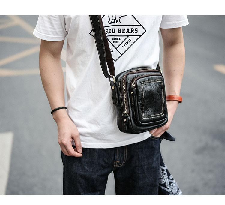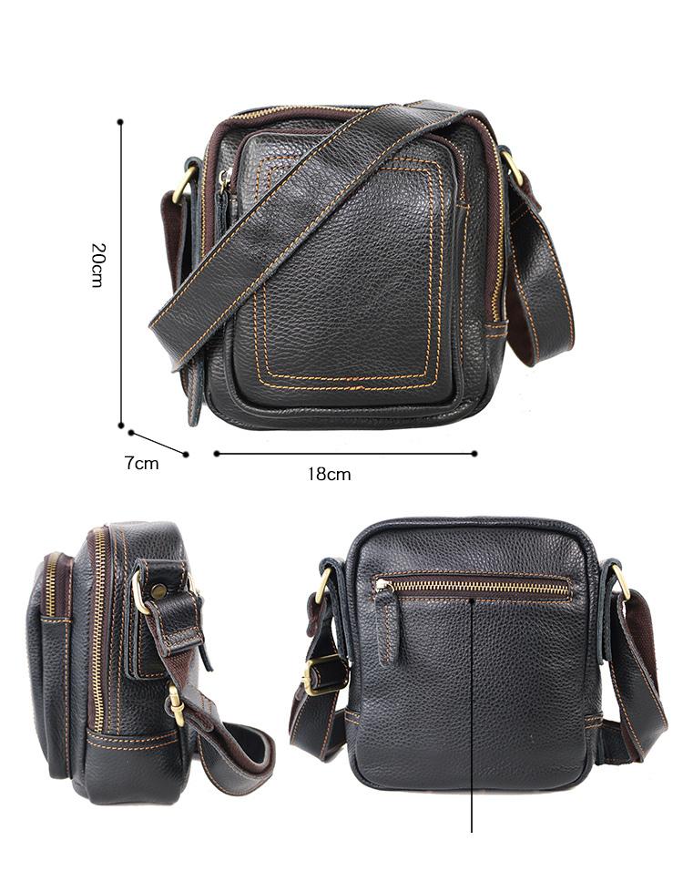 Design: Black Cool Leather Mens Small Postman Bag Messenger Bag Black Courier Bags For Men