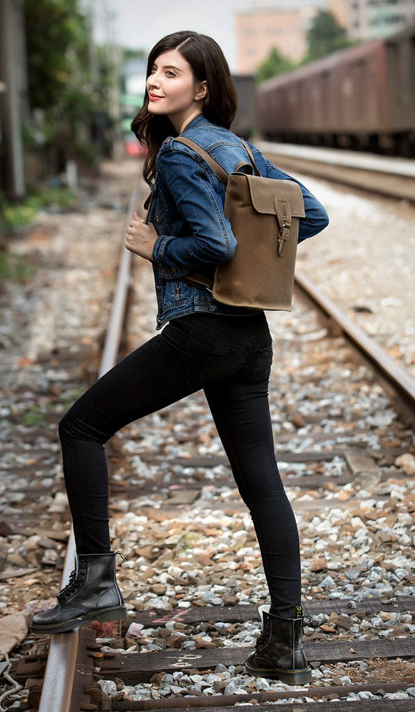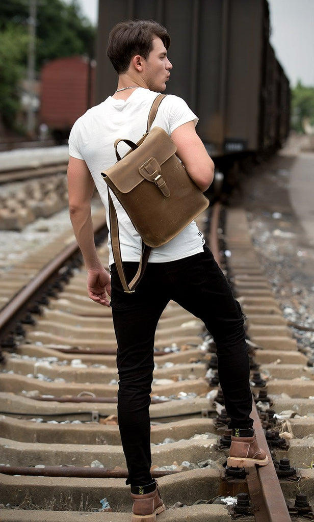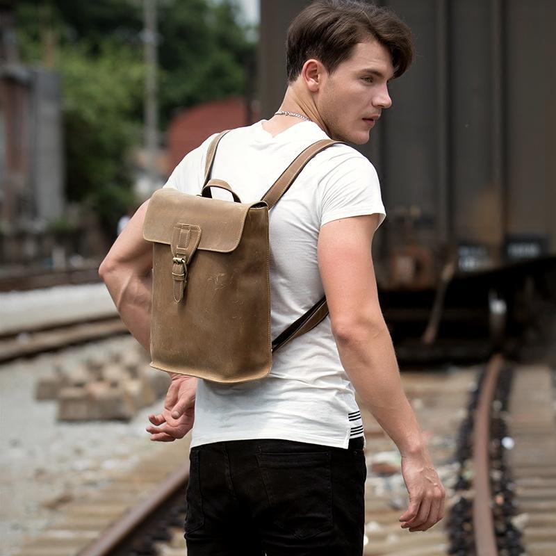 Design: Black Fashion Mens Leather 14-inch Computer Backpack Brown Satchel Backpacks School Backpacks for men