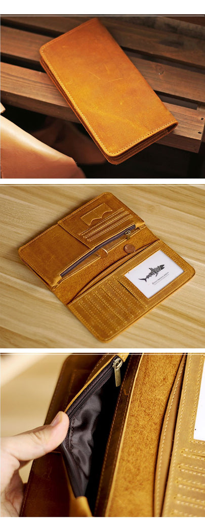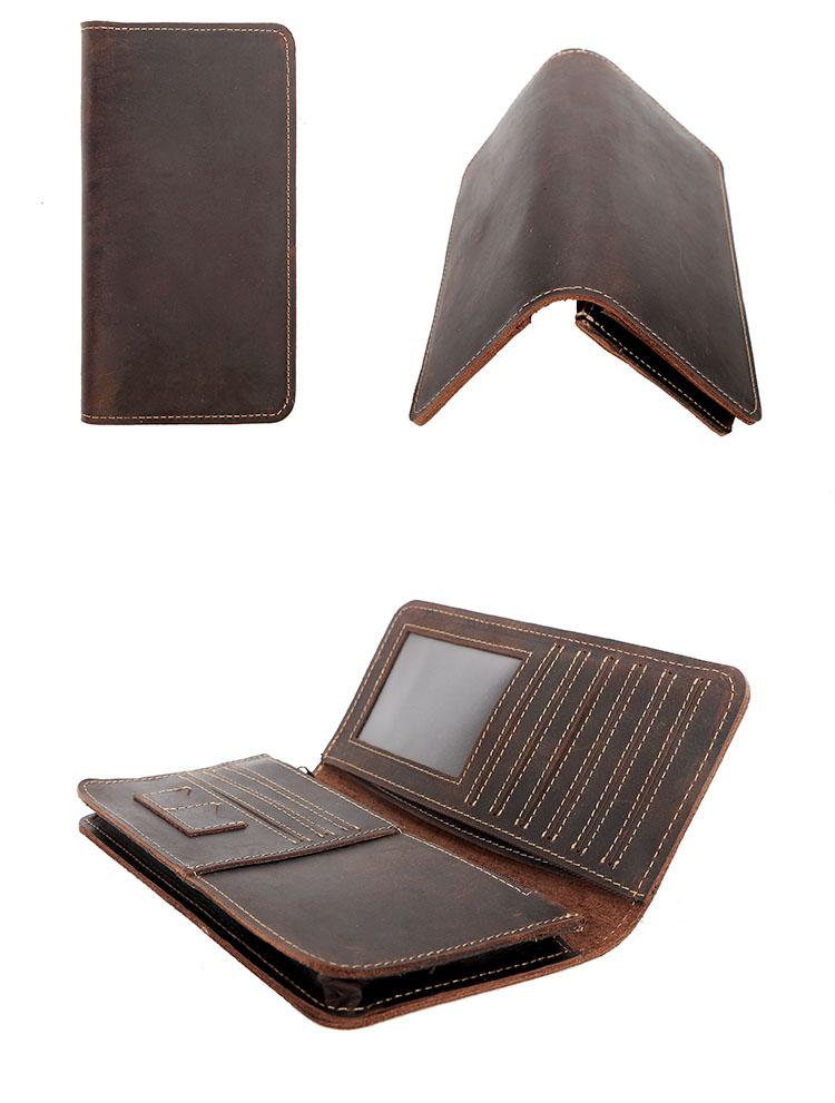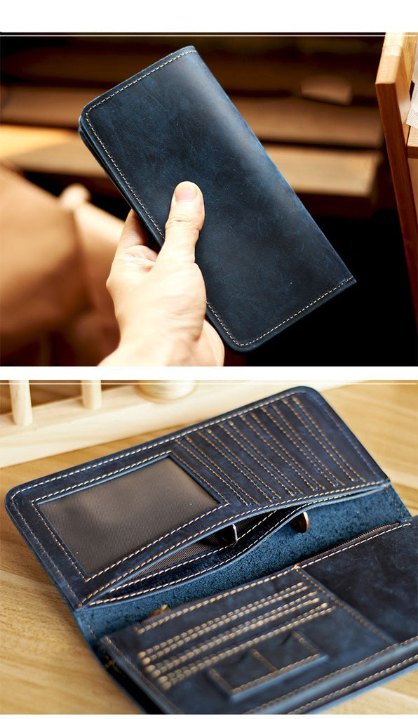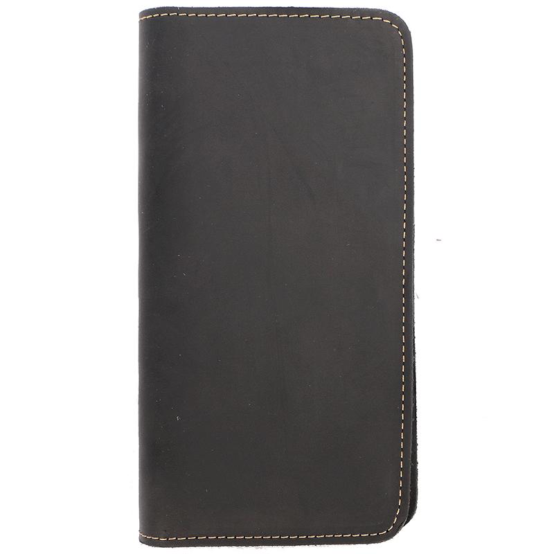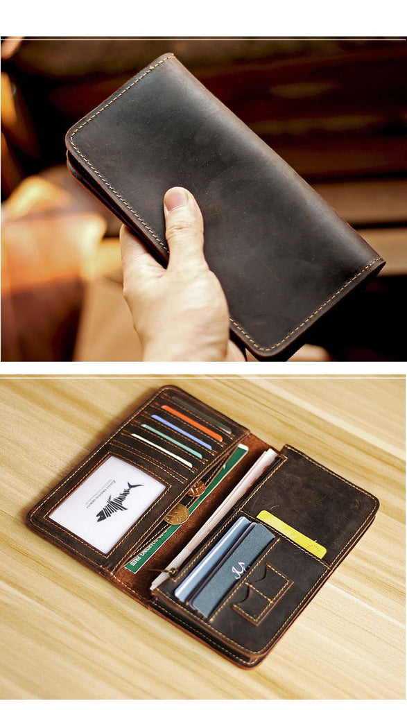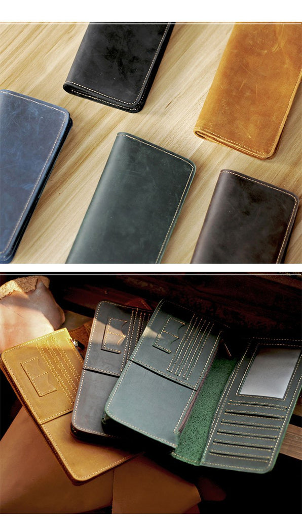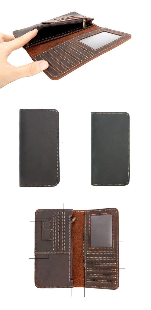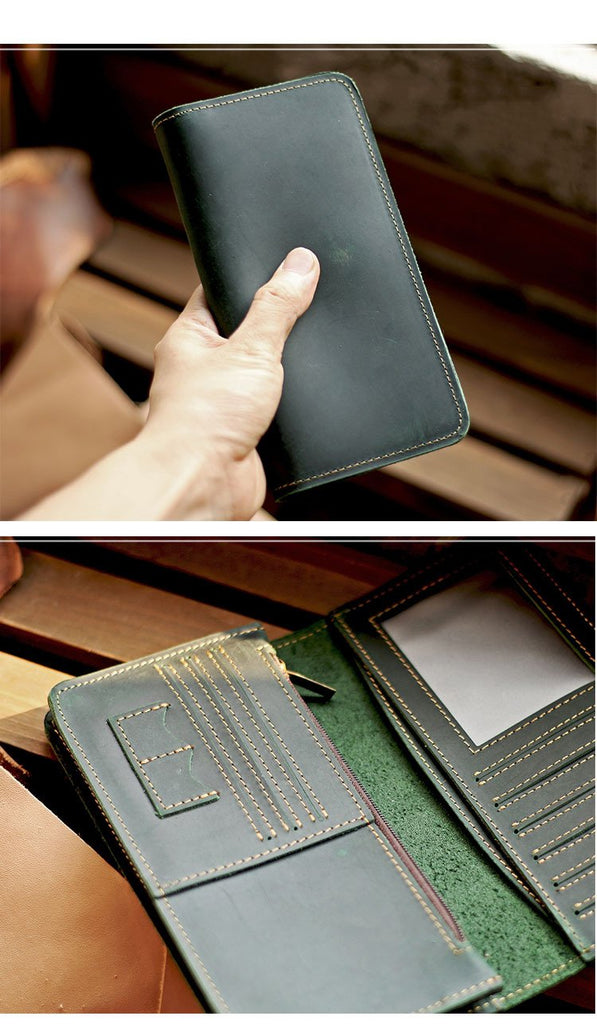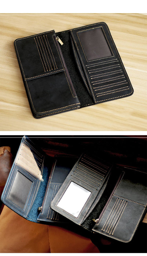 Style: Black Handmade Leather Mens Phone Wallet Clutch Bag Wristlet Bag Zipper Long Wallet For Men