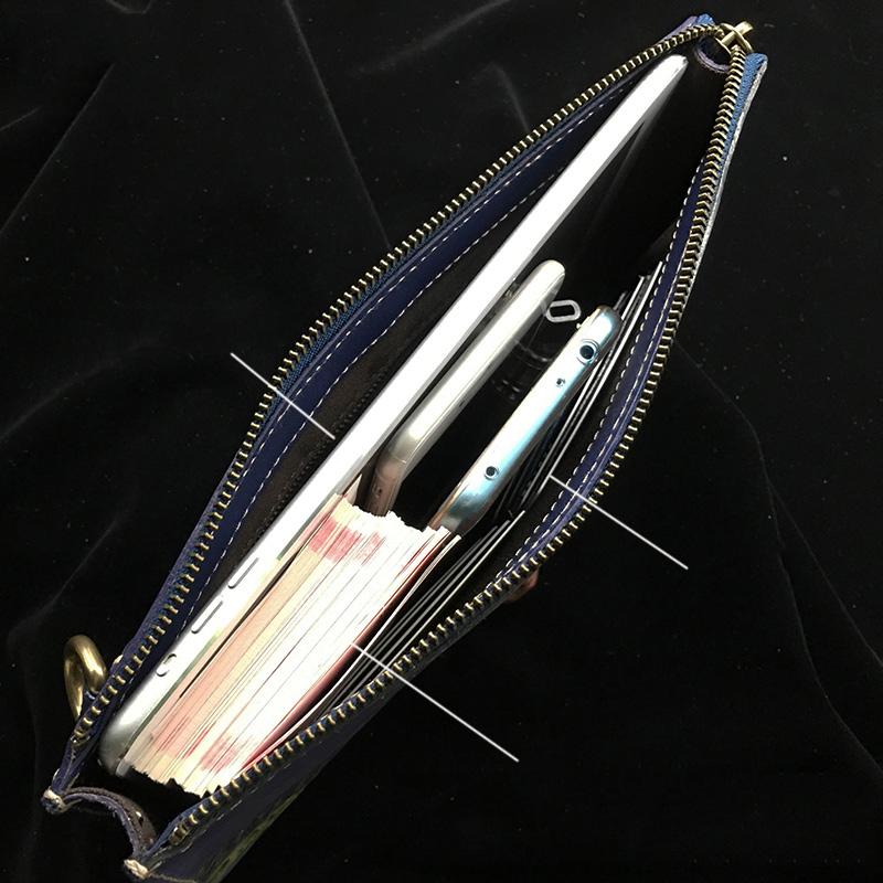 Design: Blue Handmade Tooled Leather Wolf Clutch Wallet Wristlet Bag Clutch Purse For Men
