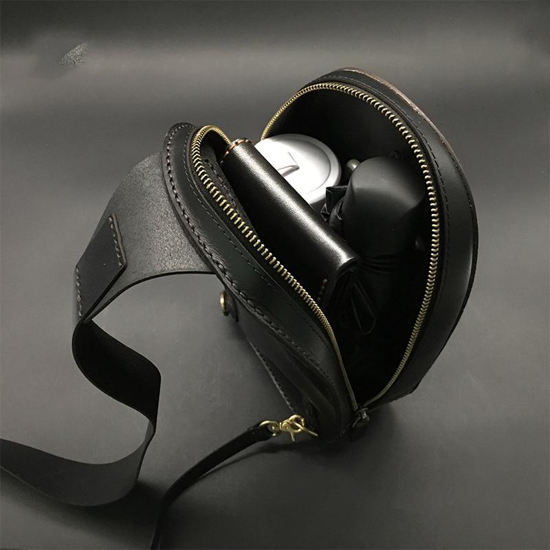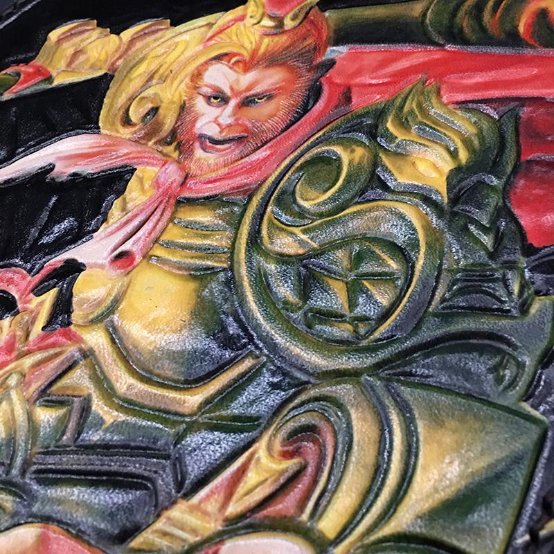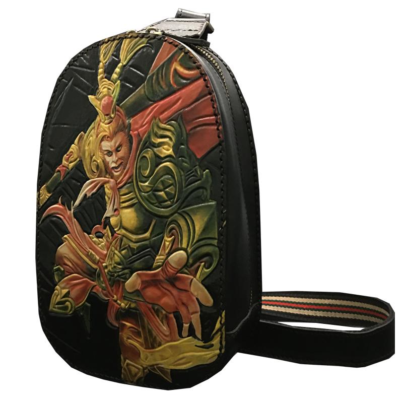 Style: Black Handmade Tooled Leather Monkey King Sling Bag Chest Bag One Shoulder Backpack For Men
