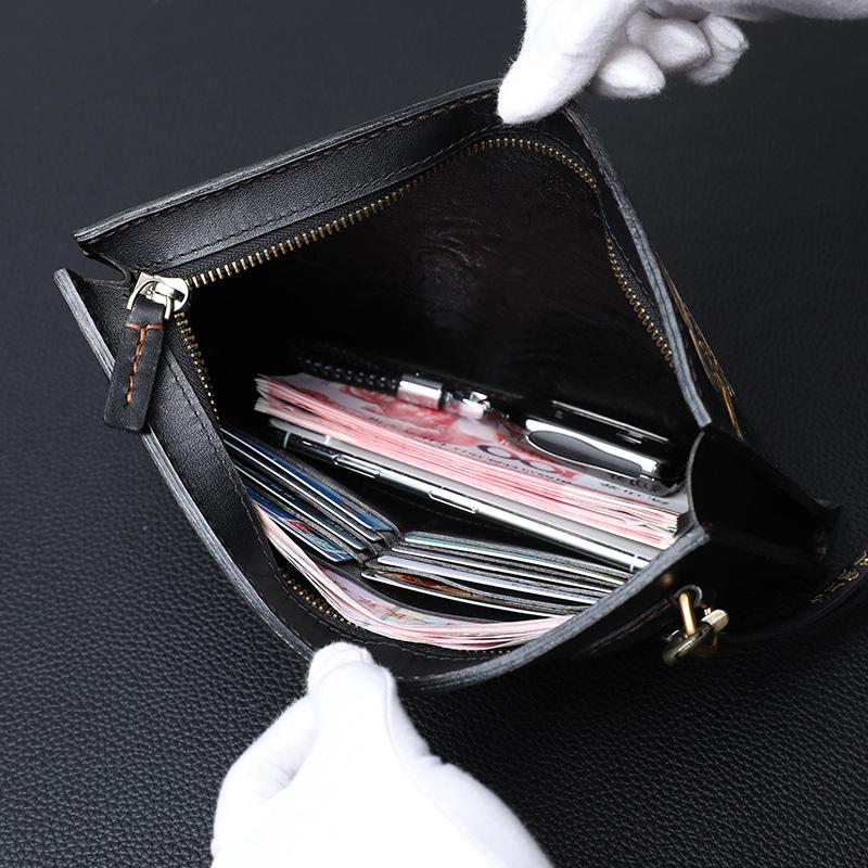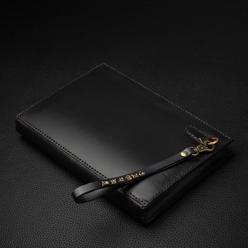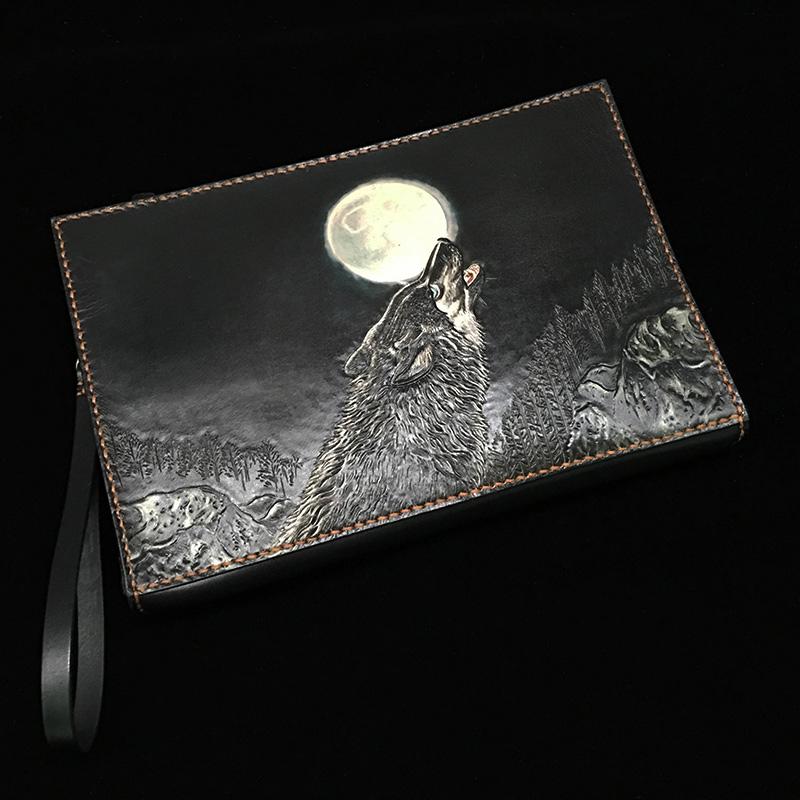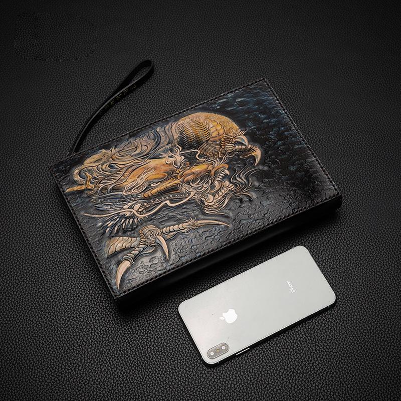 Design: Black Handmade Tooled Leather Chinese DragonClutch Wallet Wristlet Bag Clutch Purse For Men