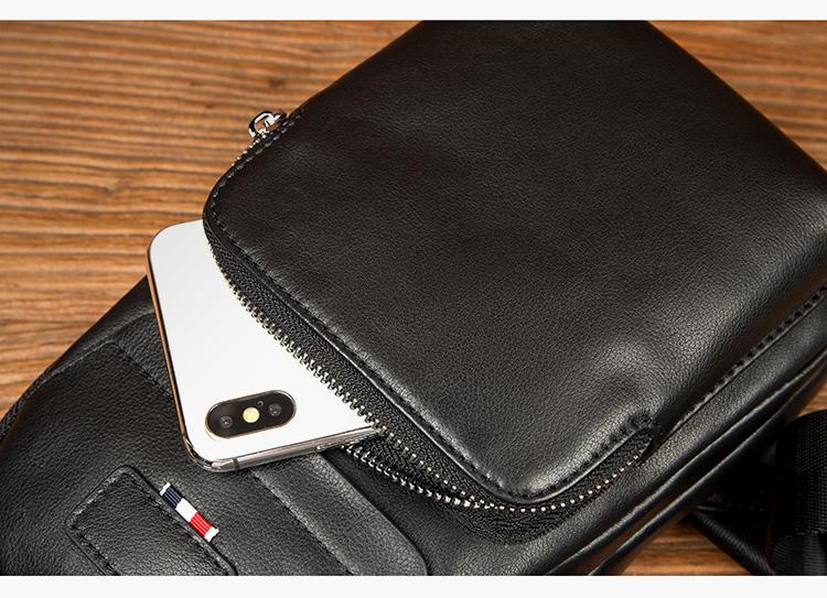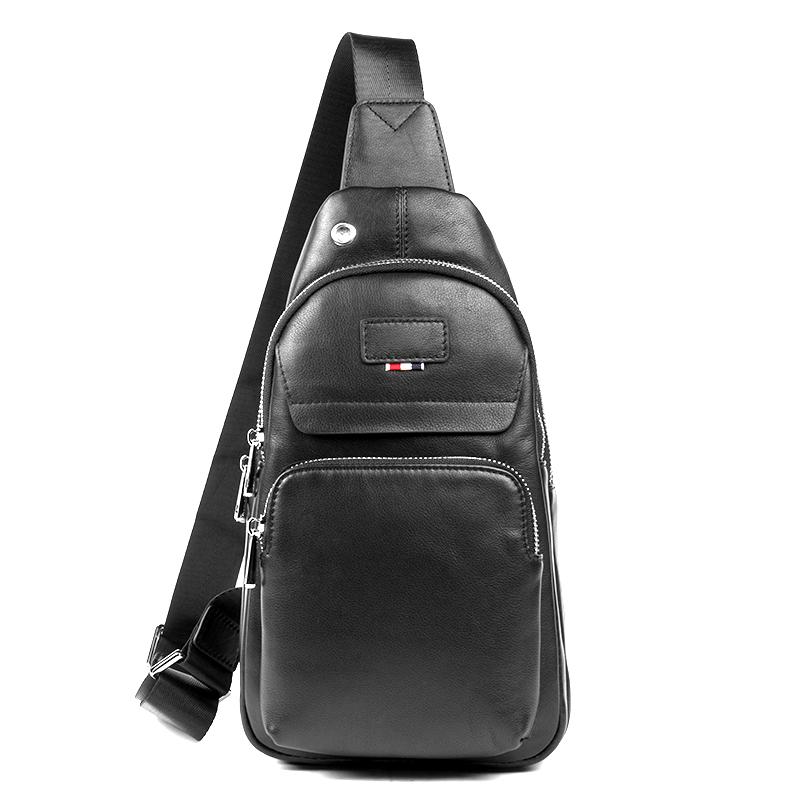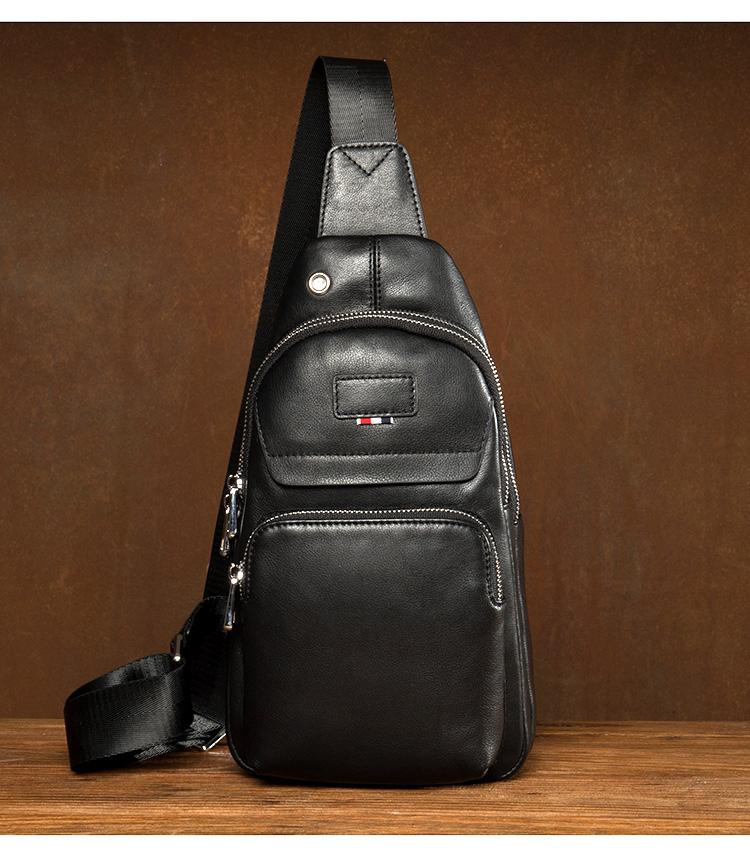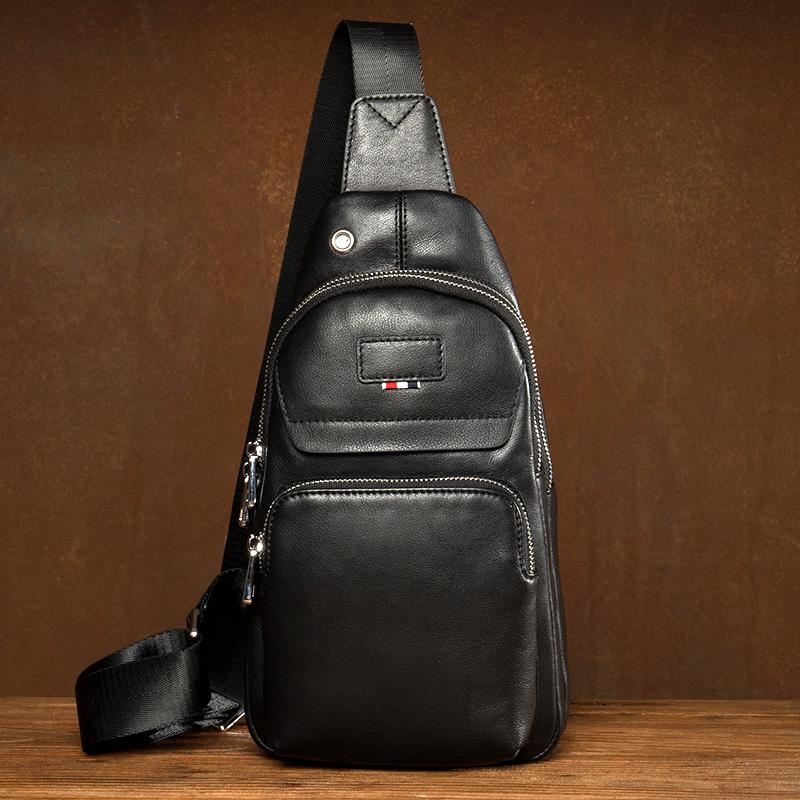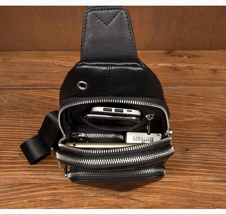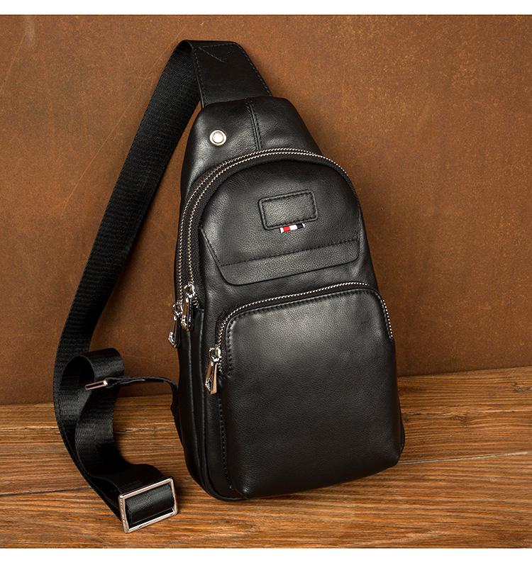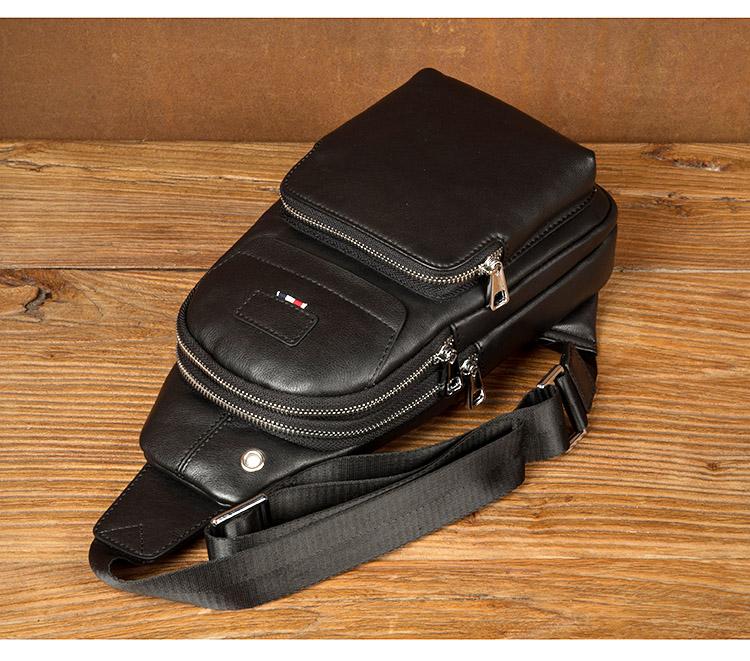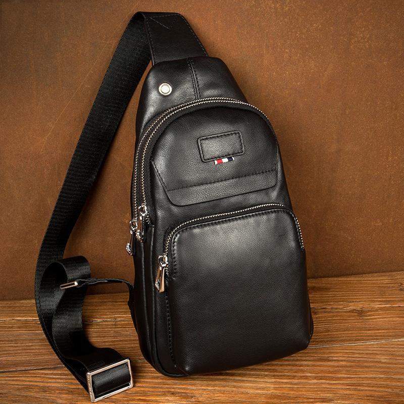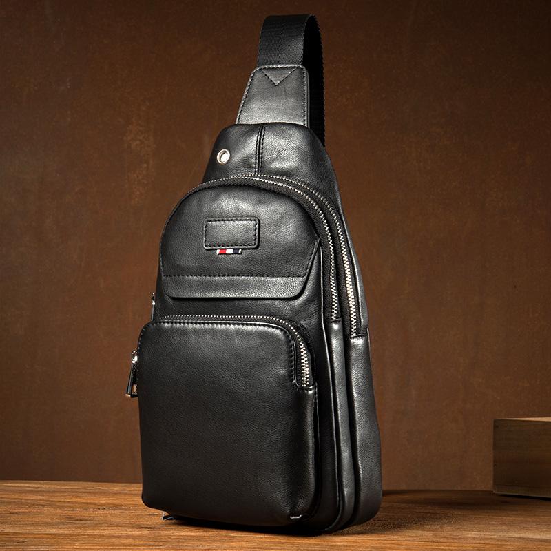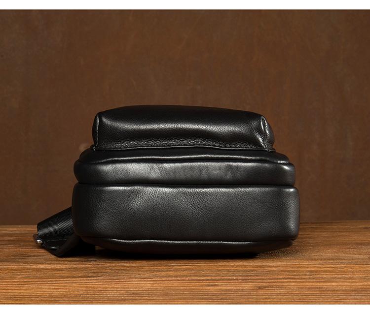 Design: Black Leather Mens 8 inches Cool Sling Bags Crossbody Bag Chest Bags for men