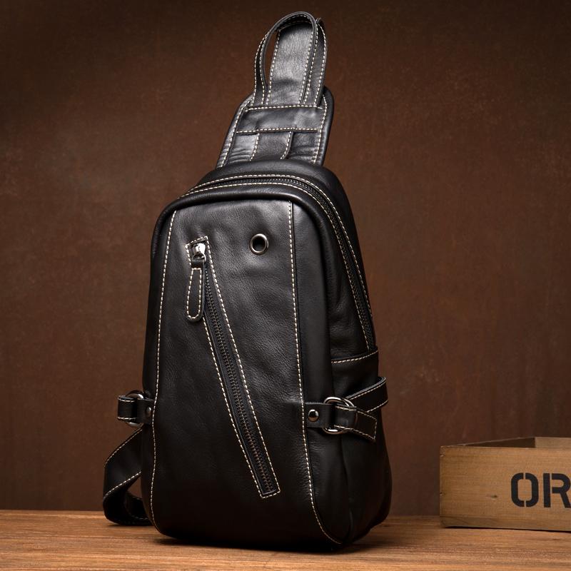 Black Leather Mens Cool Sling Bags Crossbody Pack Black Sling Pack Chest Bags for men
