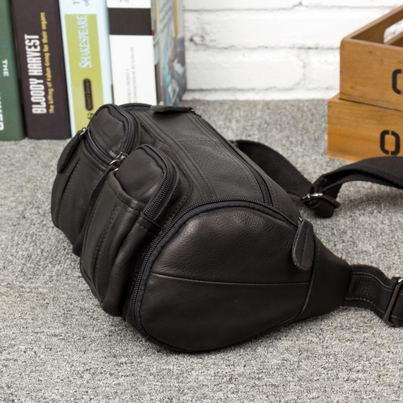 Design: Black Leather Mens Cool 8 inches Sling Pack Black Crossbody Packs Chest Bags for men