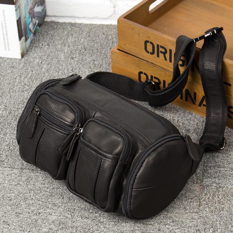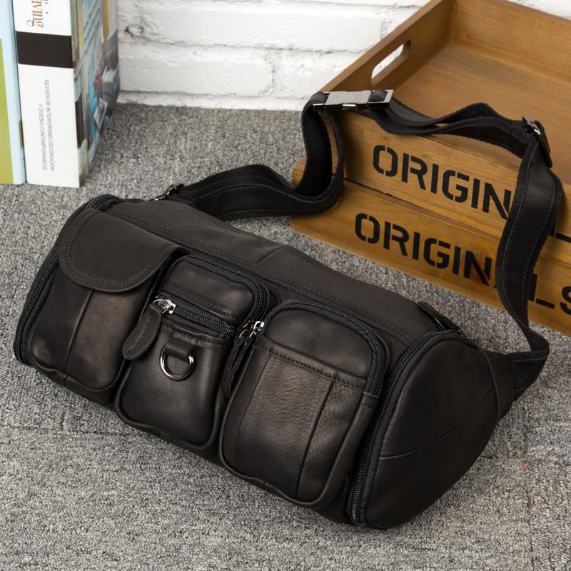 Style: Black Leather Mens Cool 8 inches Sling Pack Black Crossbody Packs Chest Bags for men