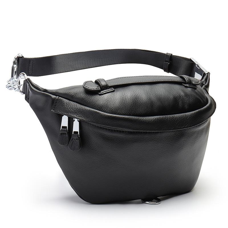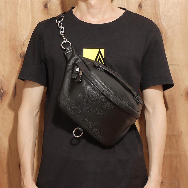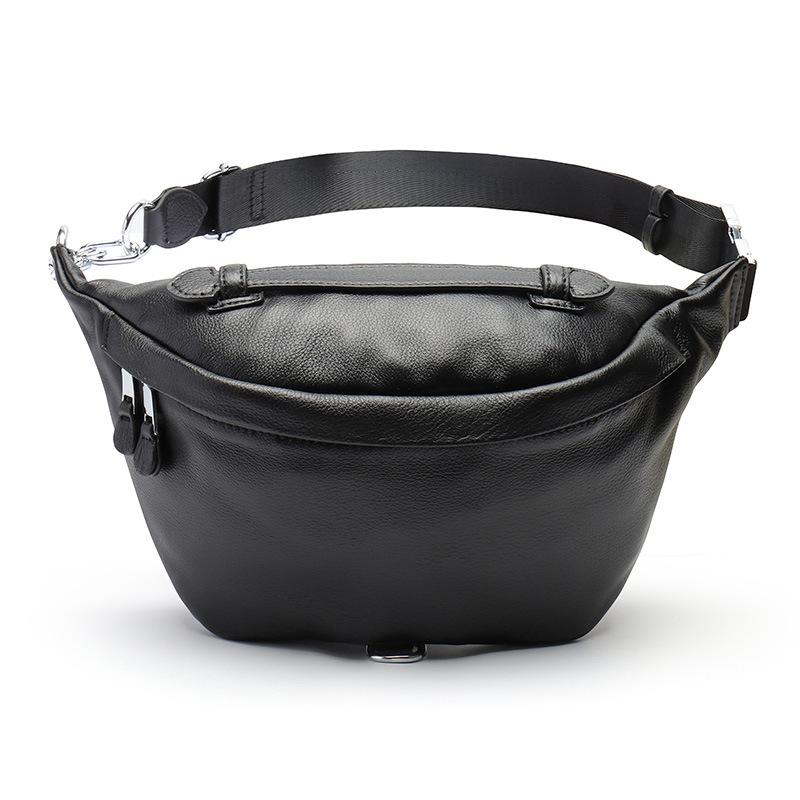 Black MENS LEATHER FANNY PACK BUMBAG Fanny Bag Black WAIST BAGS For Men