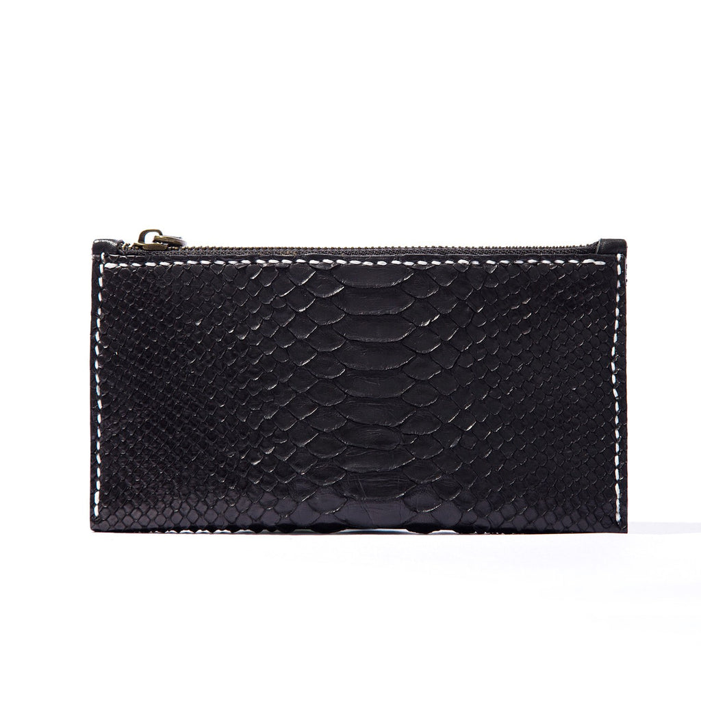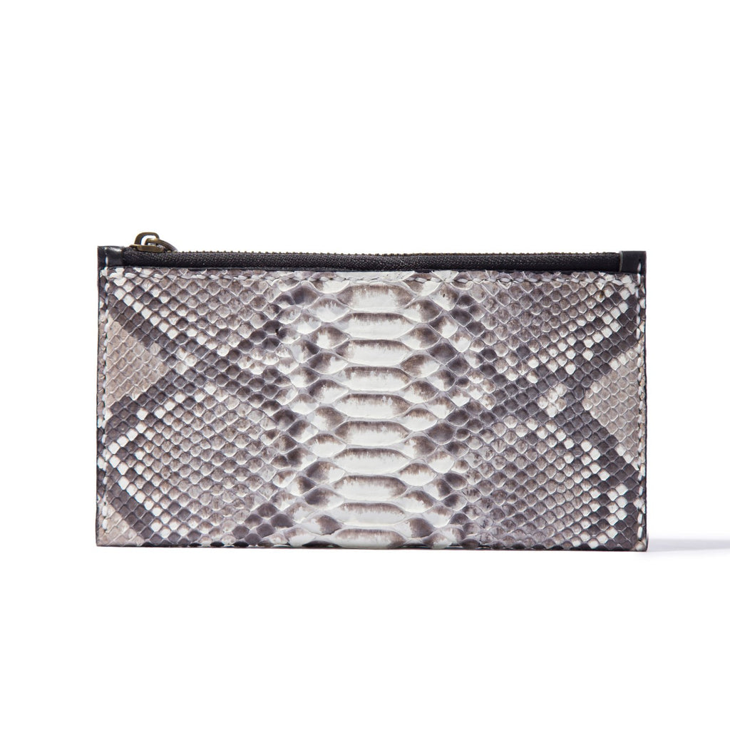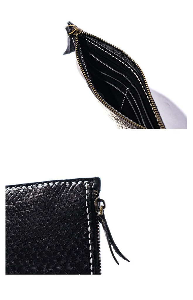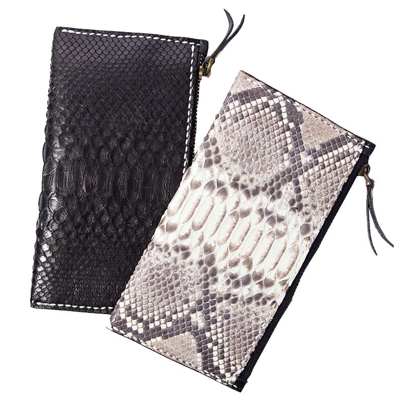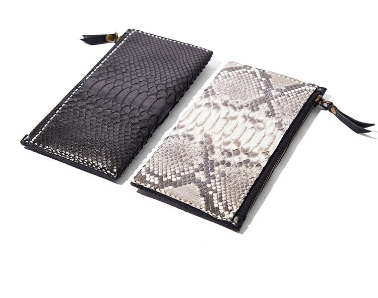 Black Snakeskin Leather Mens Slim Long Wallet Bifold Zipper Clutch Wallet For Men