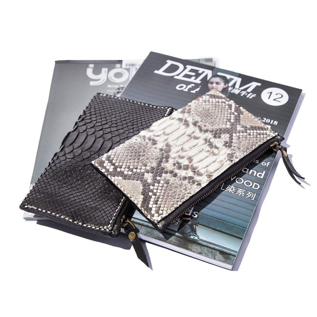 Design: Black Snakeskin Leather Mens Long Wallet Bifold Card Wallet Coin Purse For Men