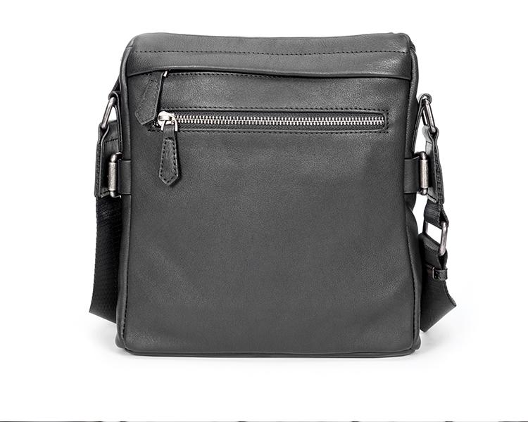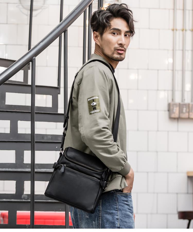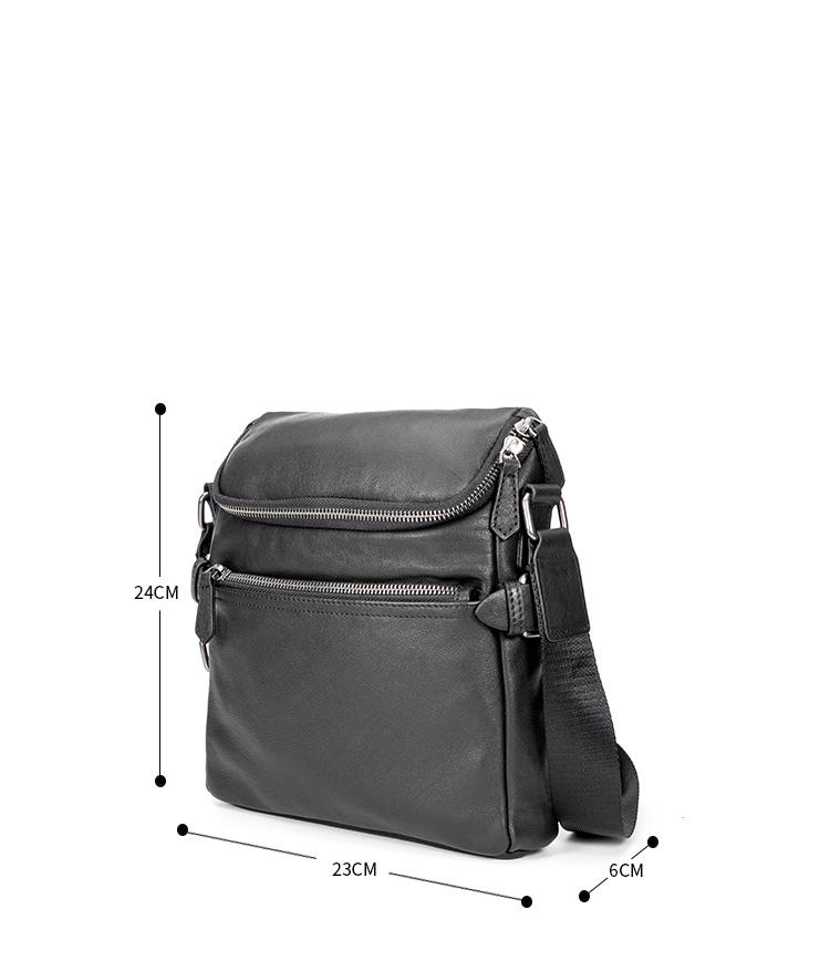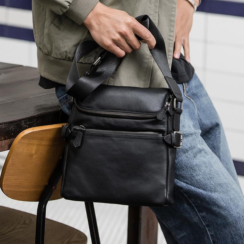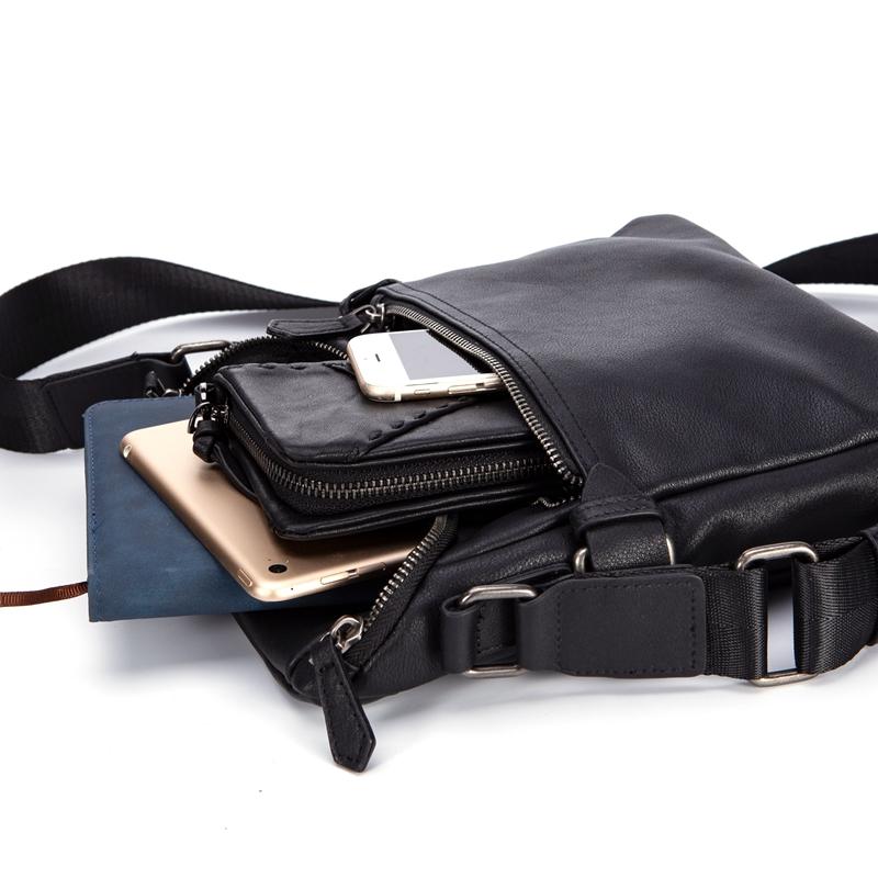 Design: Black Soft Leather Mens 10 inches Business Postman Bag Black Messenger Bags Side Bag for Men