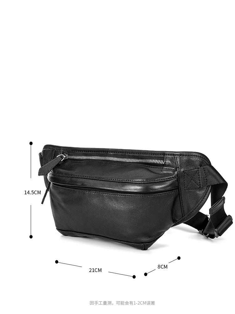 Design: Black Soft Leather Mens 8inches Waist Bag Chest Bag Black One Shoulder Backpack for Men