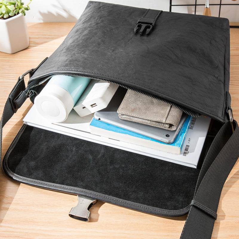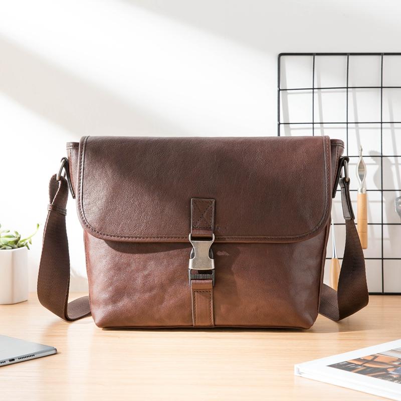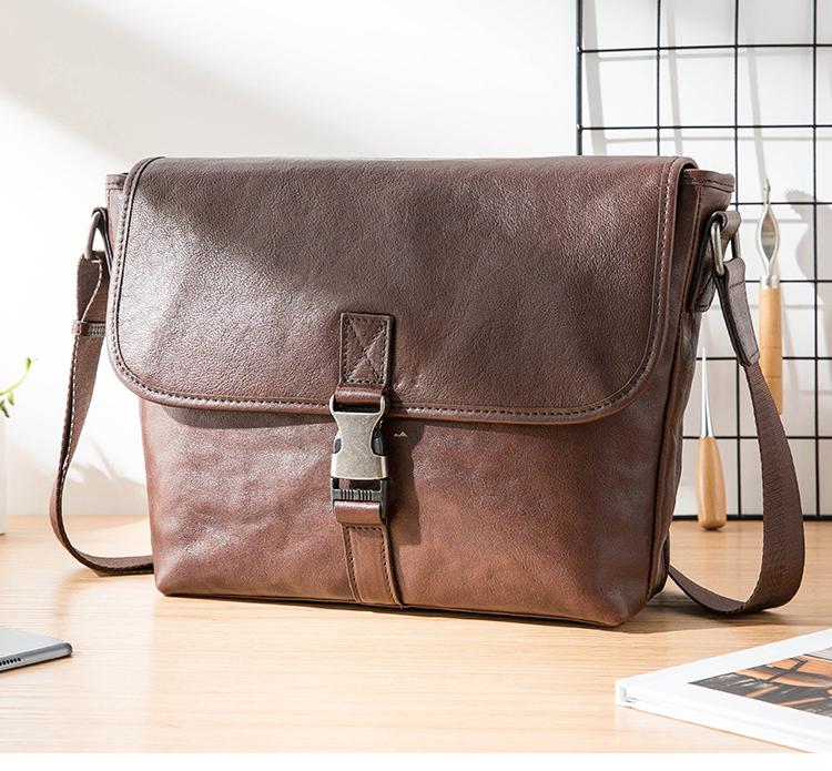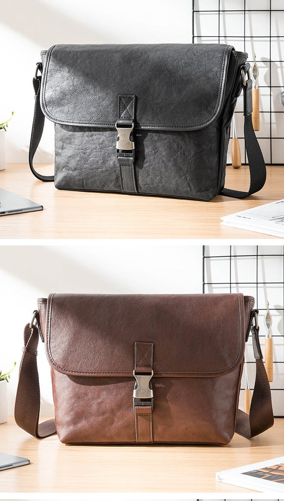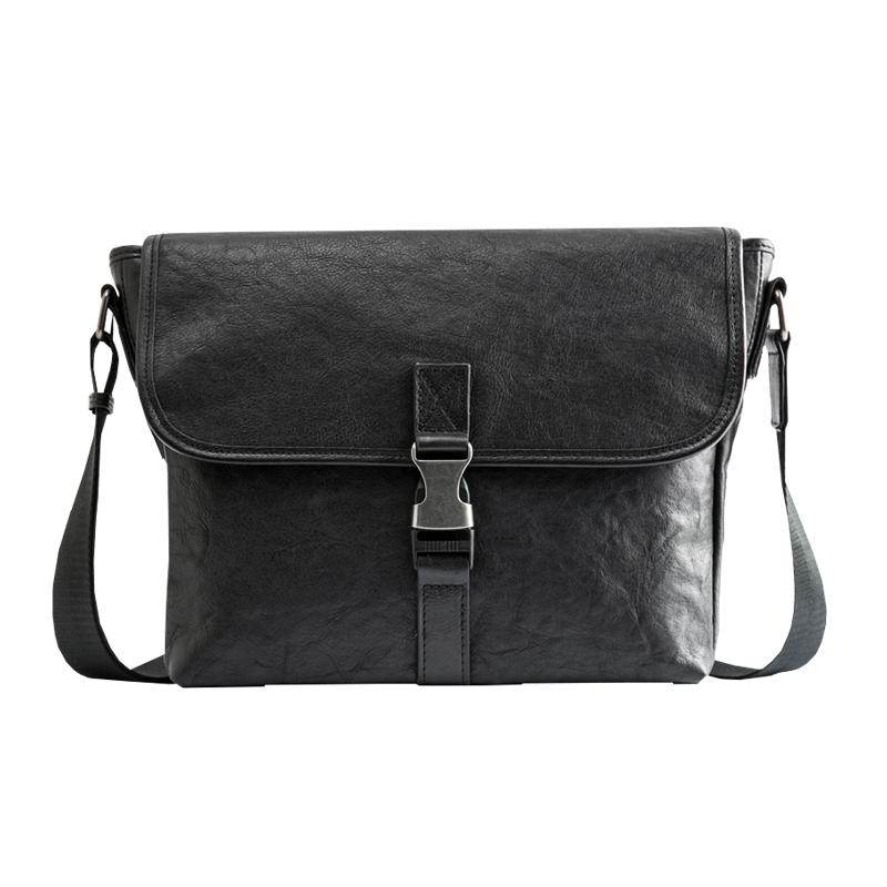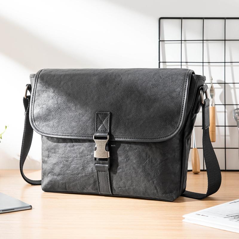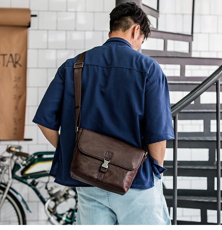 Design: Black Wrinkled Leather Mens 11 inches Side Bag Messenger Bags Soft Casual Bicycle Bags for Men