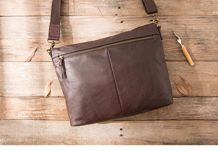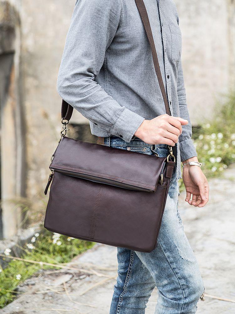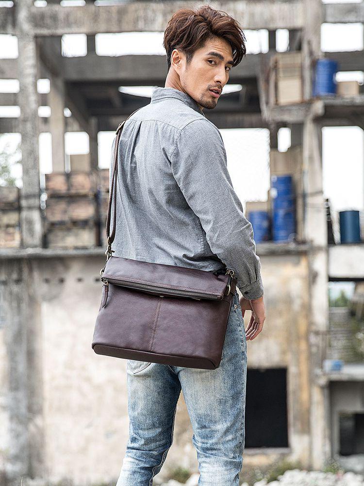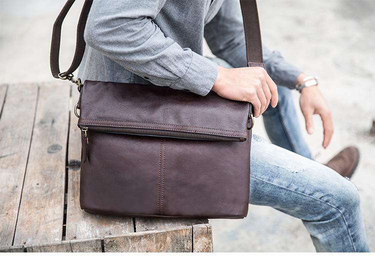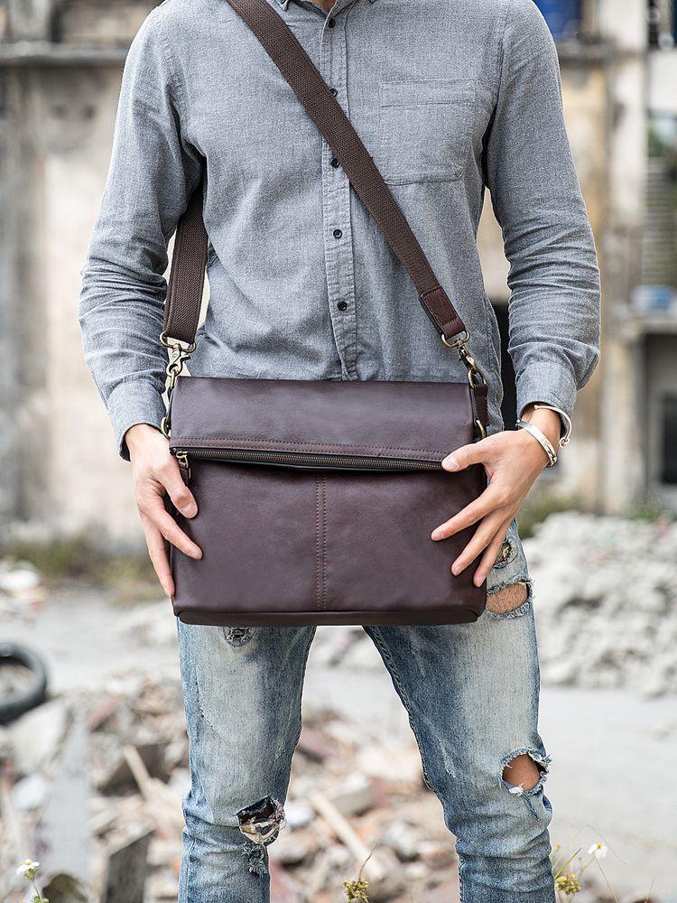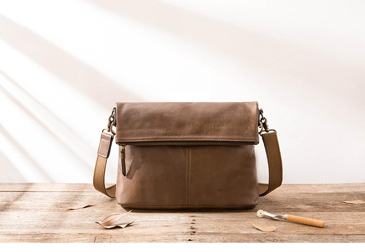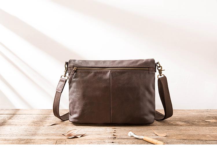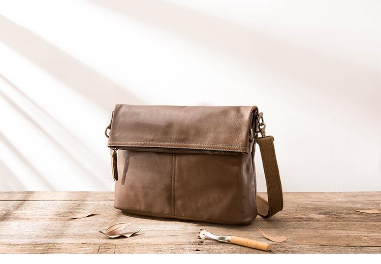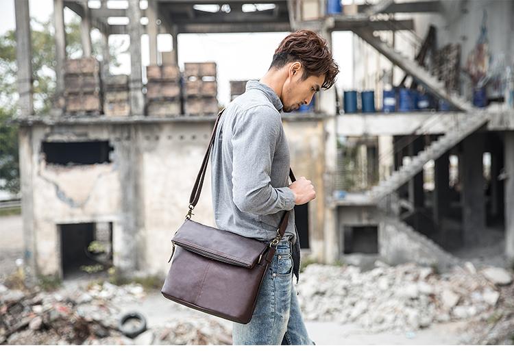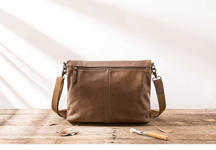Design: Brown Cool Leather Mens 11 inches Khaki Shoulder Bags Messenger Bags Courier Bag for Men