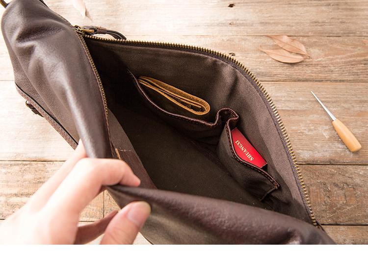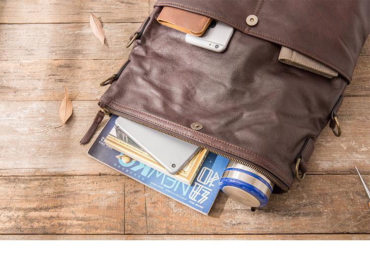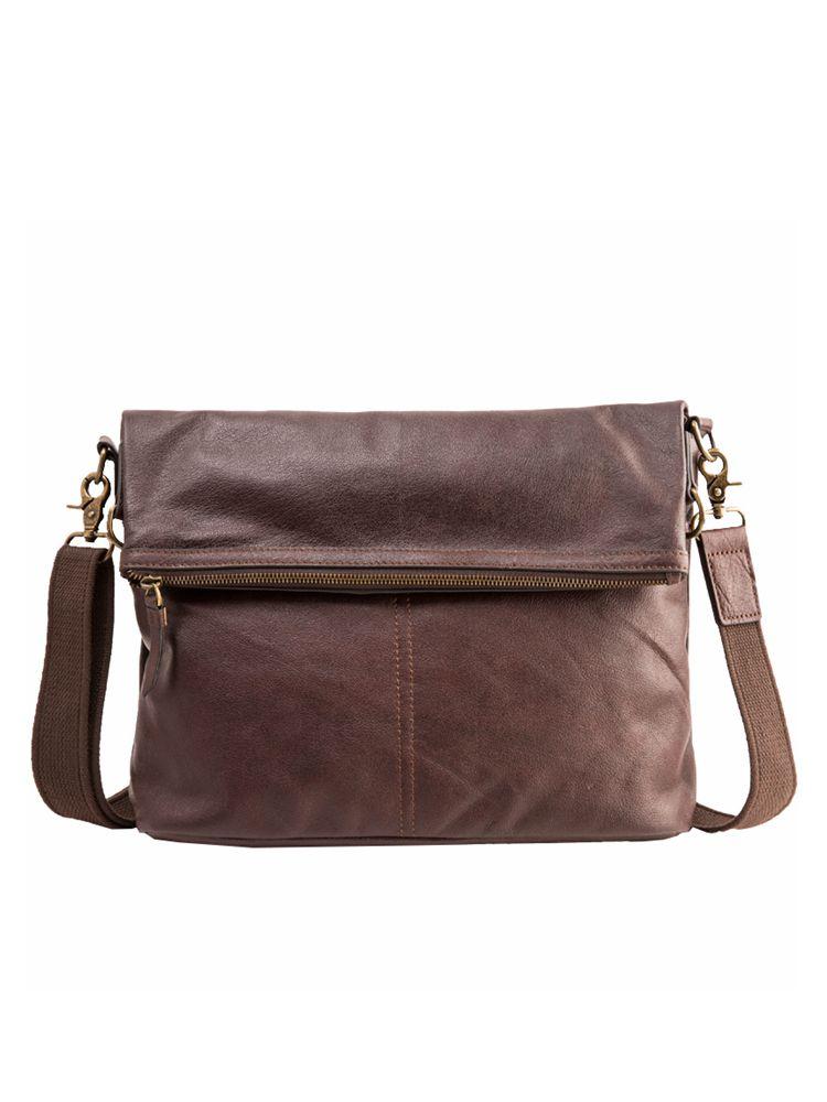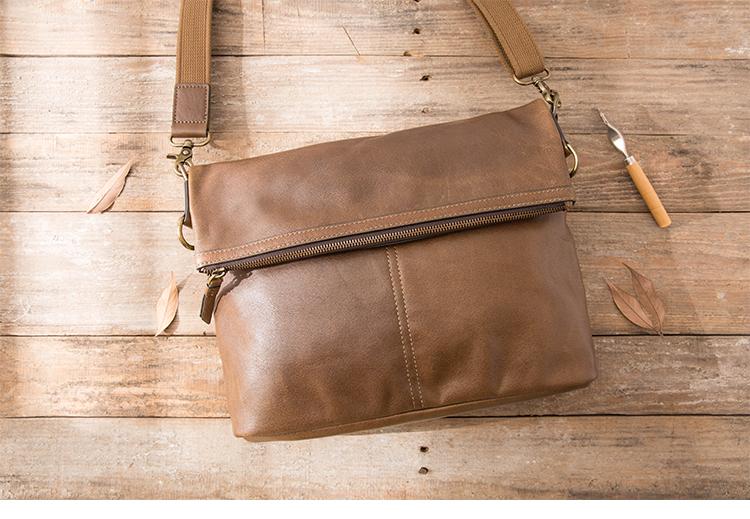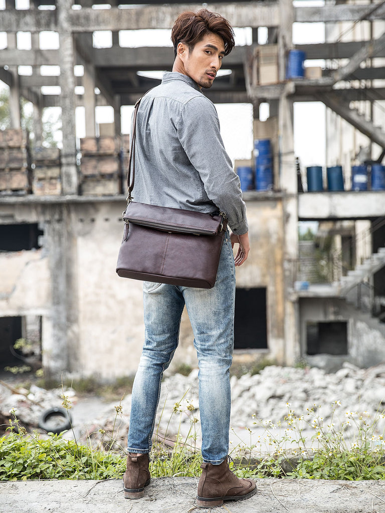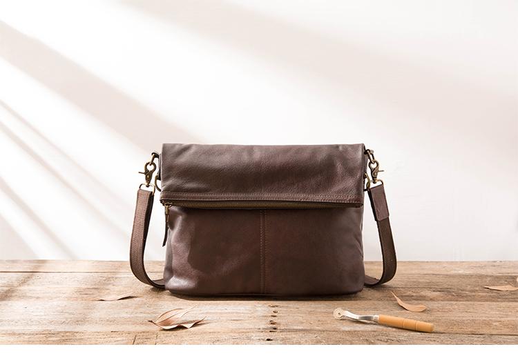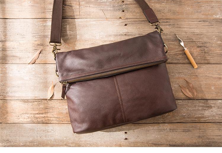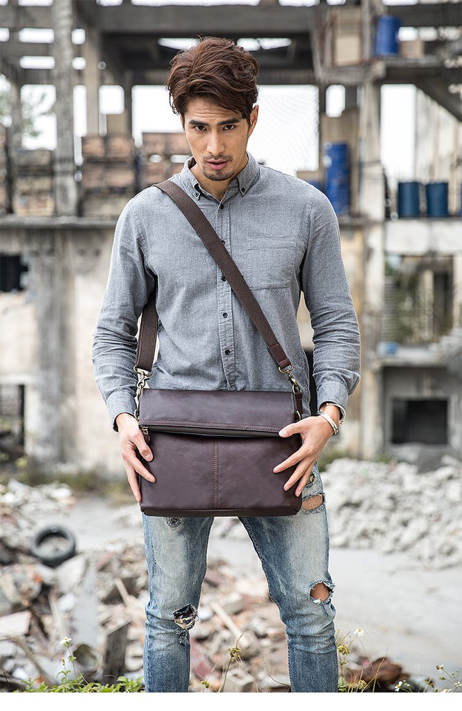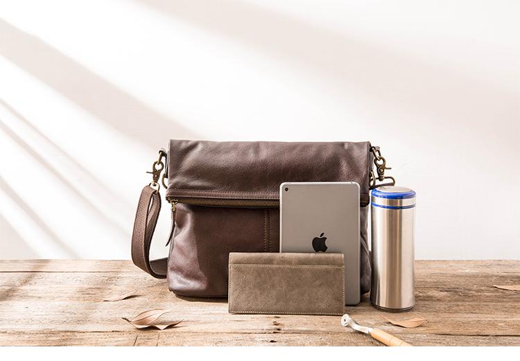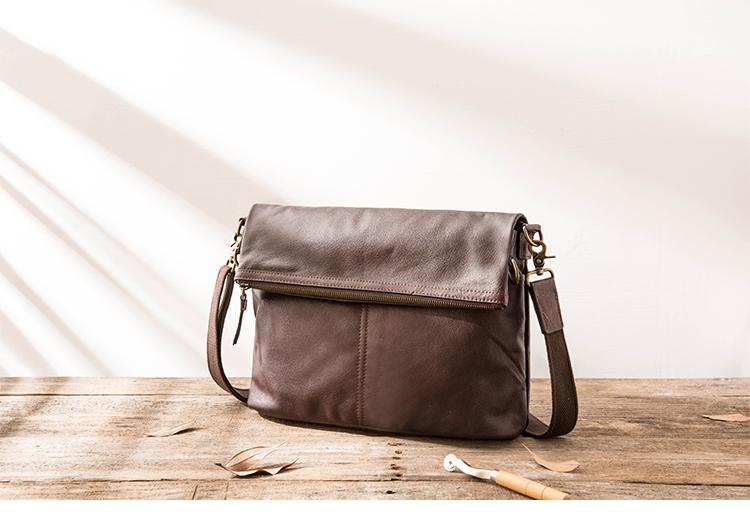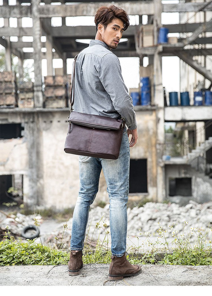 Design: Brown Cool Leather Mens 11 inches Khaki Shoulder Bags Messenger Bags Courier Bag for Men