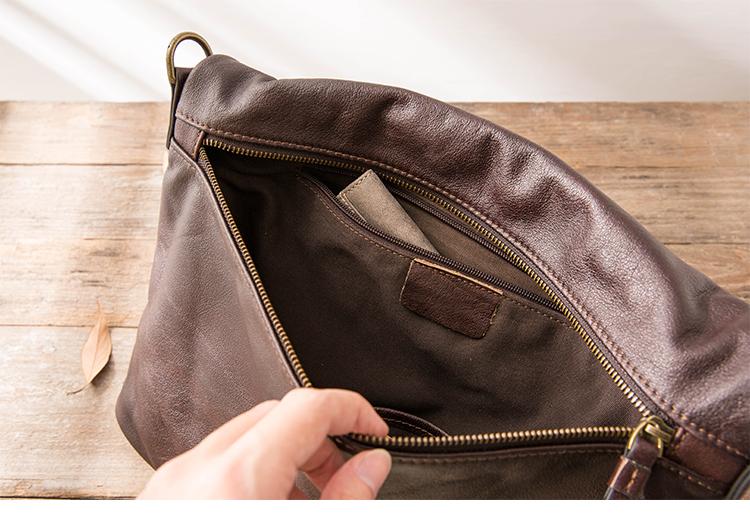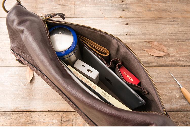 Brown Cool Leather Mens 11 inches Side Bags Messenger Bags Khaki Leather Courier Bag for Men
