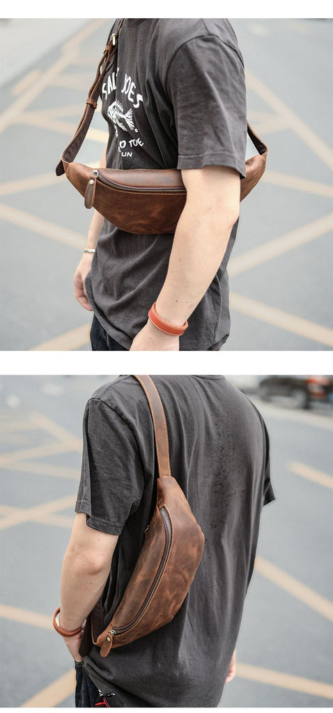 Design: Brown Cool Leather Mens Small Messenger Bag Black Courier Bag Dark Brown Postman Bag For Men