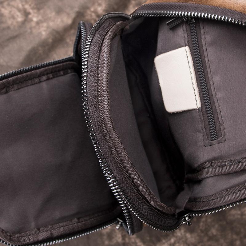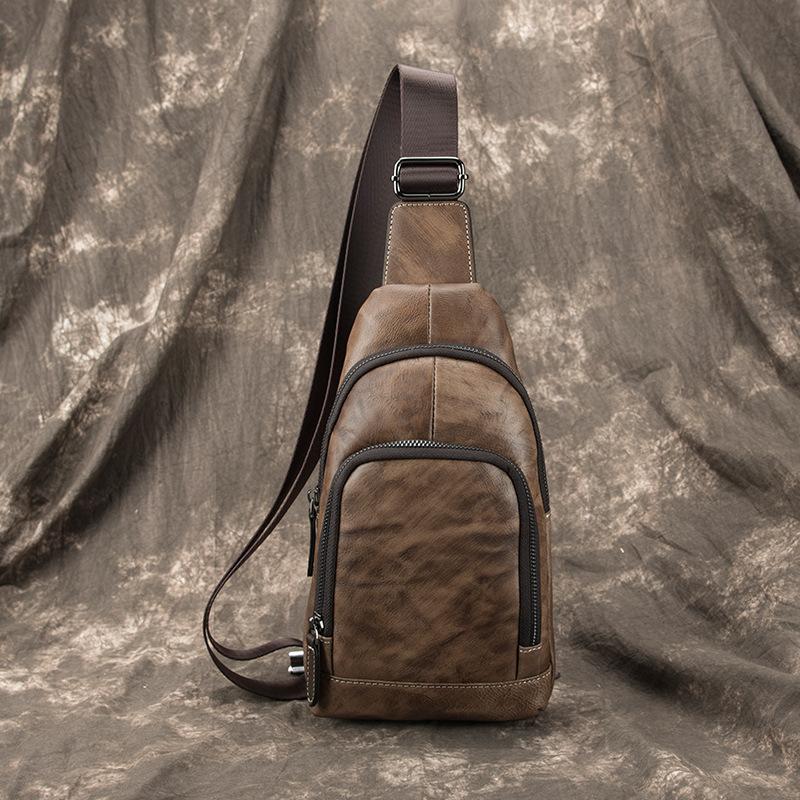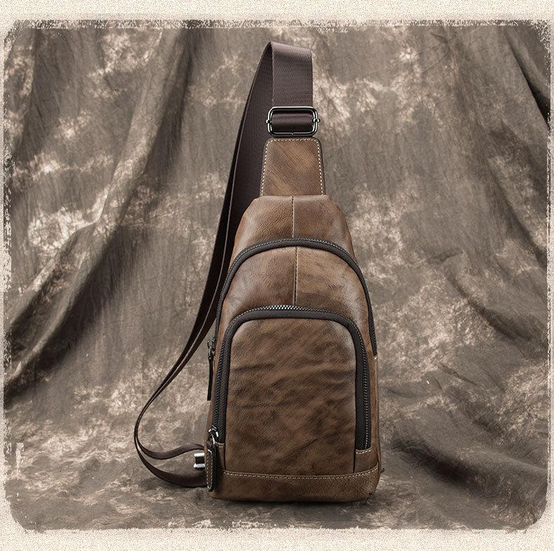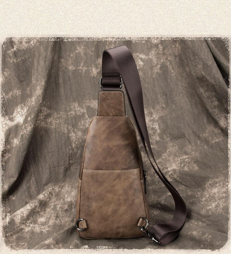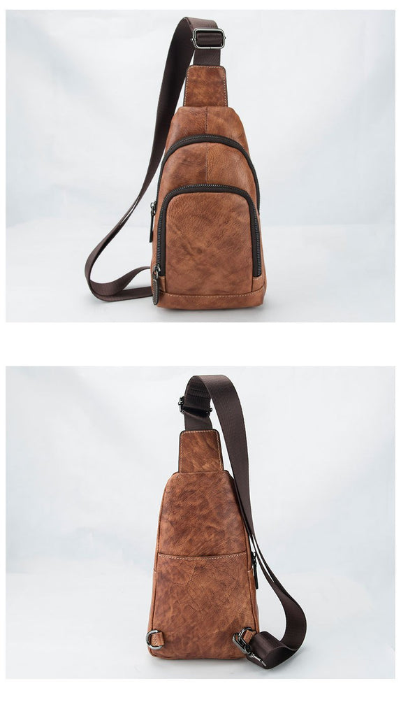 Design: Brown Cool LEATHER MENS Small Sling Bag One Shoulder Backpack Chest Bag Sports Bag For Men