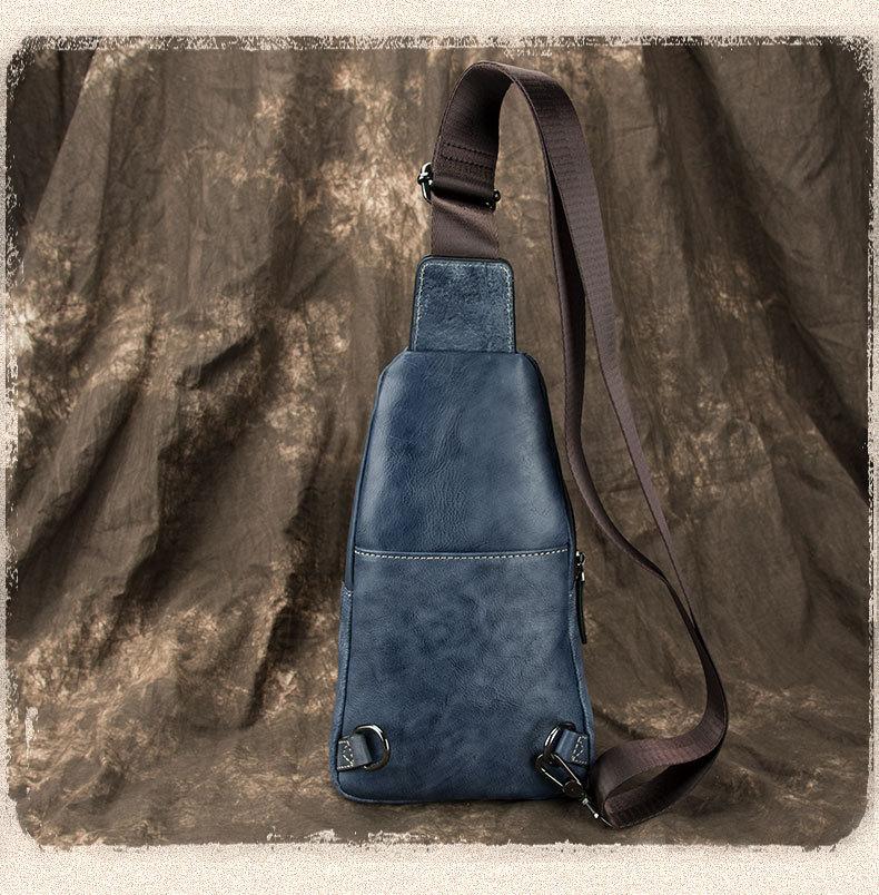 Brown Cool LEATHER MENS Sling Bag One Shoulder Backpack Blue Chest Bag Sports Bag For Men