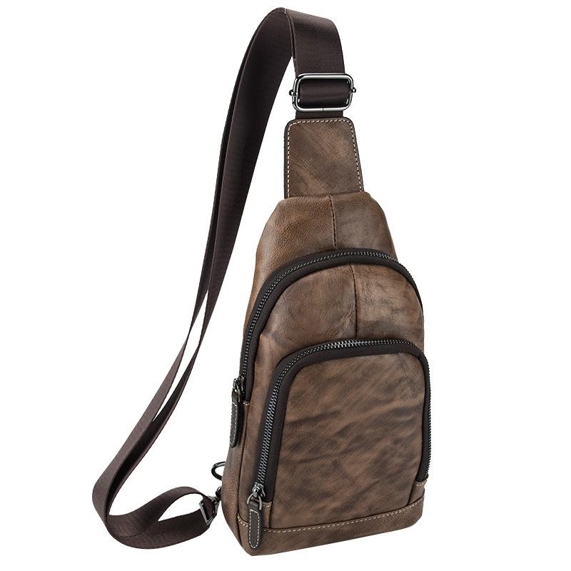 Style: Brown Cool LEATHER MENS Small Sling Bag One Shoulder Backpack Chest Bag Sports Bag For Men
