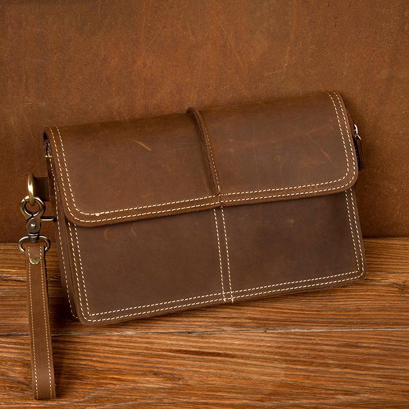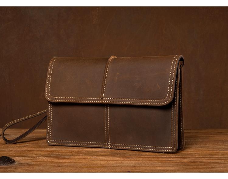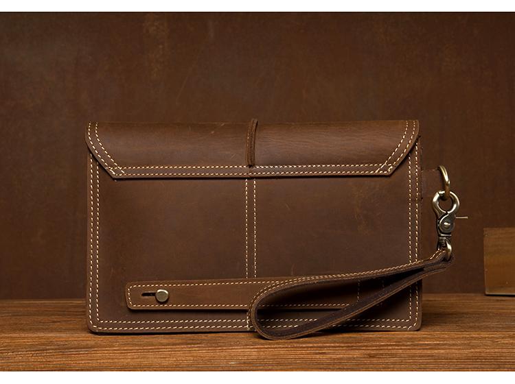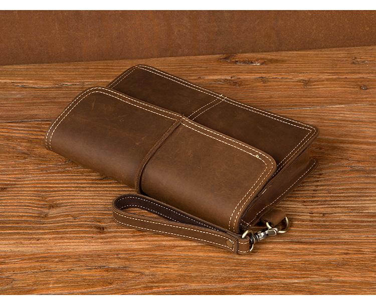 Style: Brown Cool Mens long Wallet Wristlet Bag Clutch Bag Envelope Bag Mobile Bag for Men