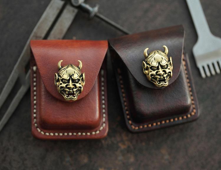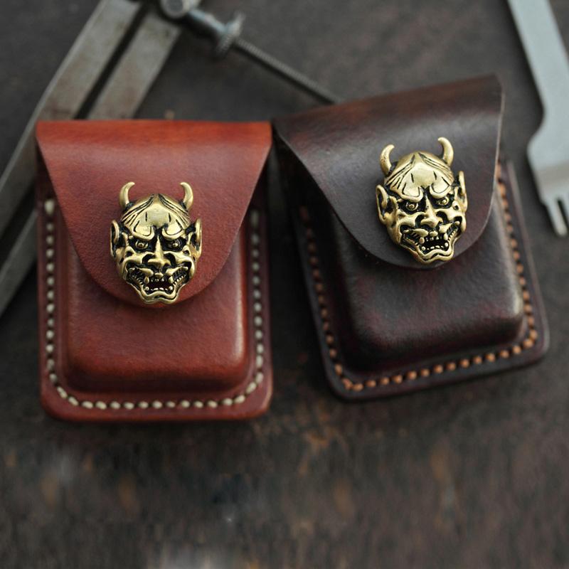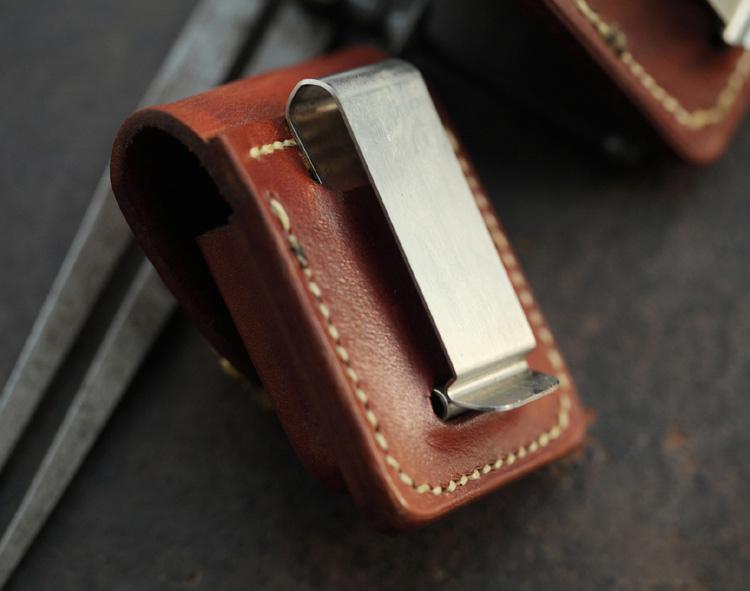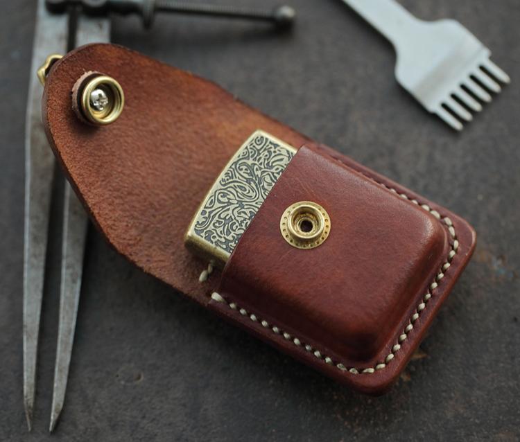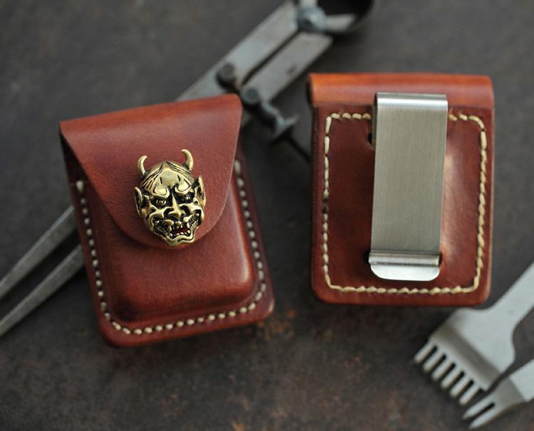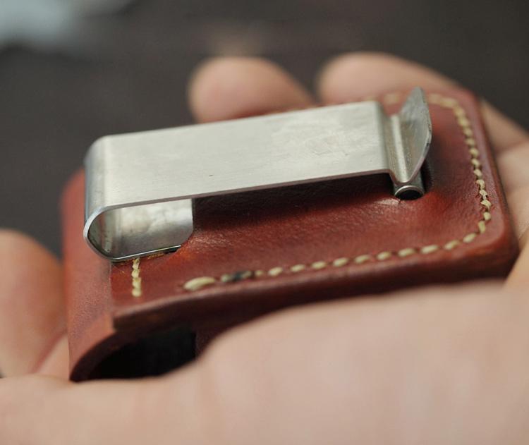 Style: Brown Handmade Leather Mens Zippo Lighter Case With Belt Loop Zippo Standard Lighter Holders Steel Clip For Men